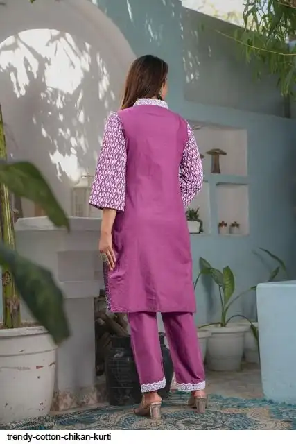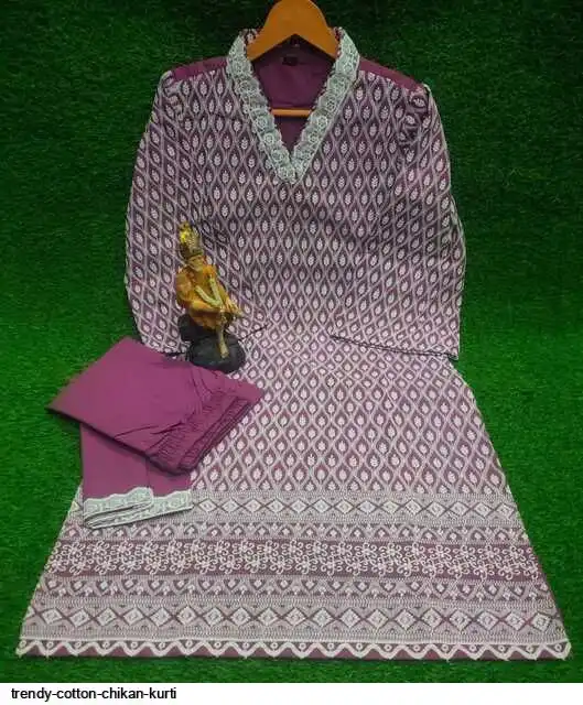 STRIGHT CHICKEN KARI KURTA WITH COTTON PANT
