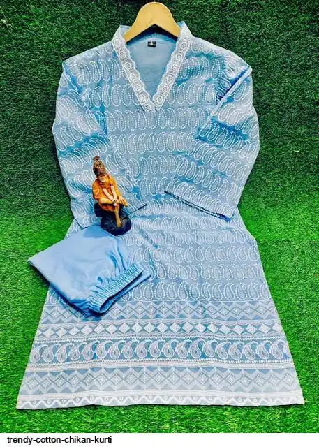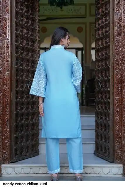 STRIGHT CHICKEN KARI KURTA WITH COTTON PANT