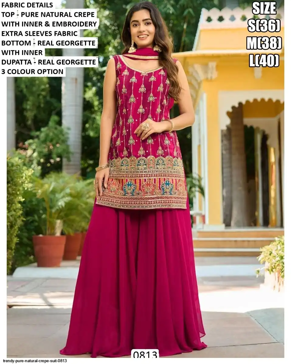 TOP PURE NATURAL CREPE WITH INNER & EMBROIDERY