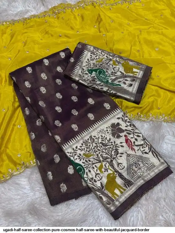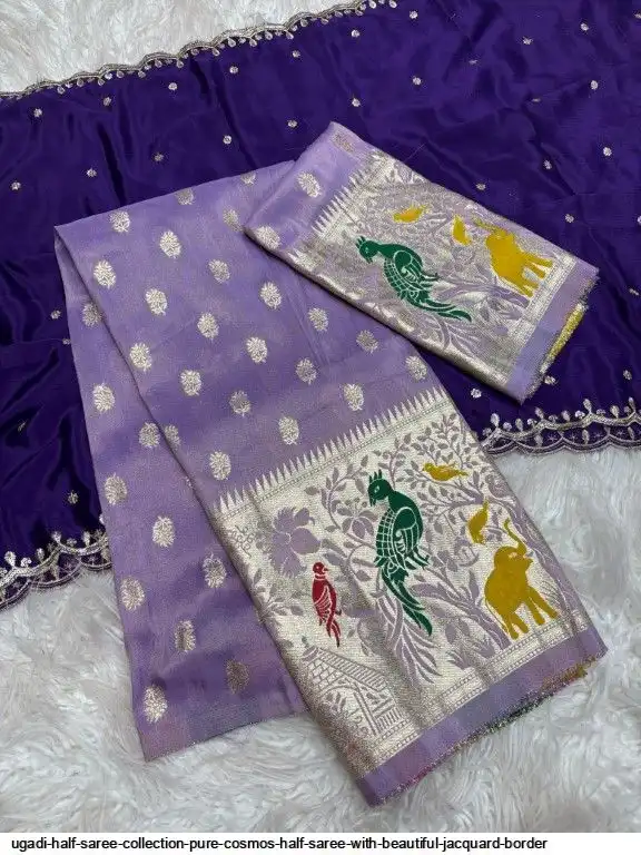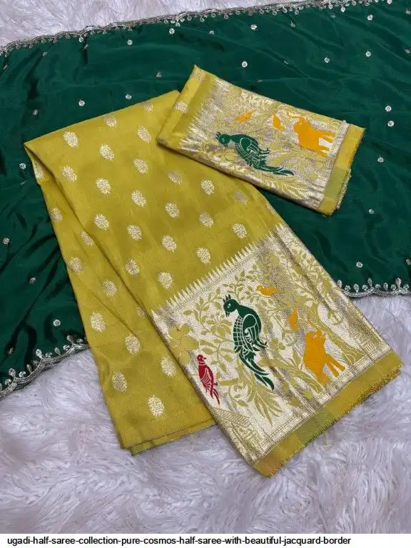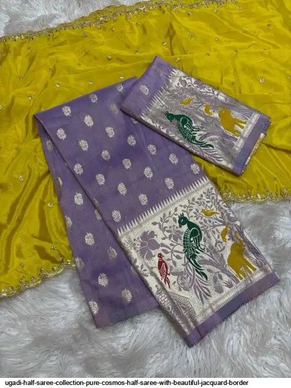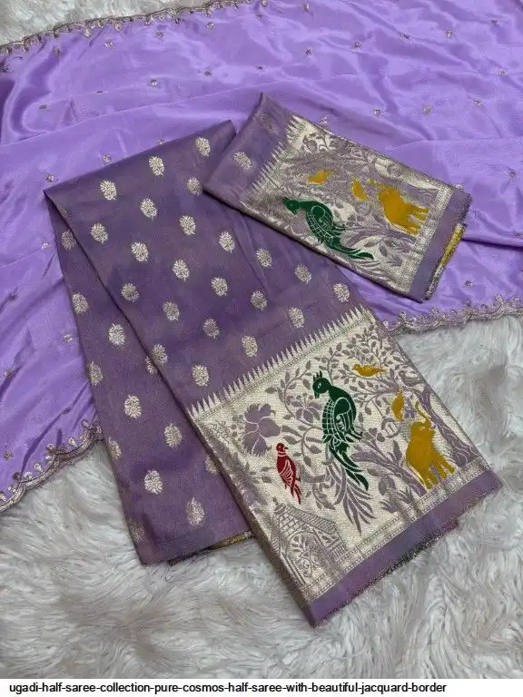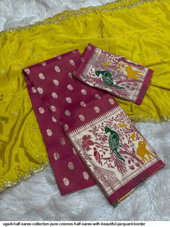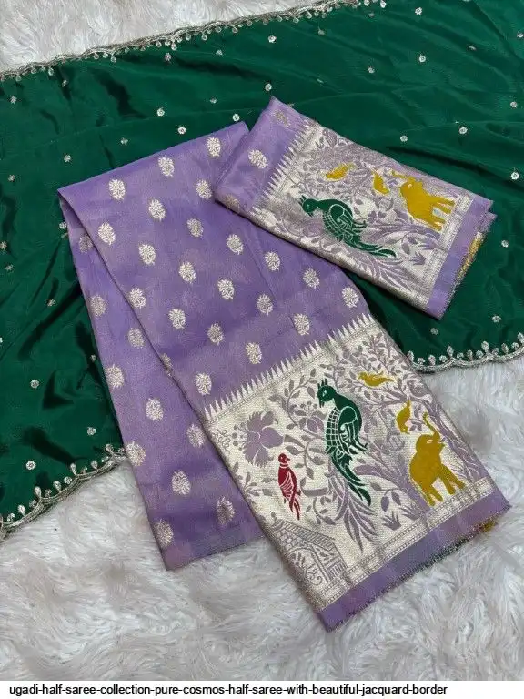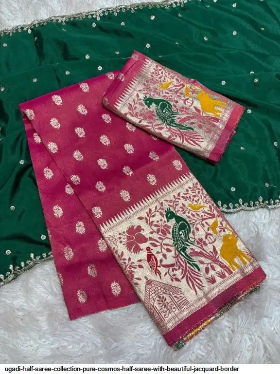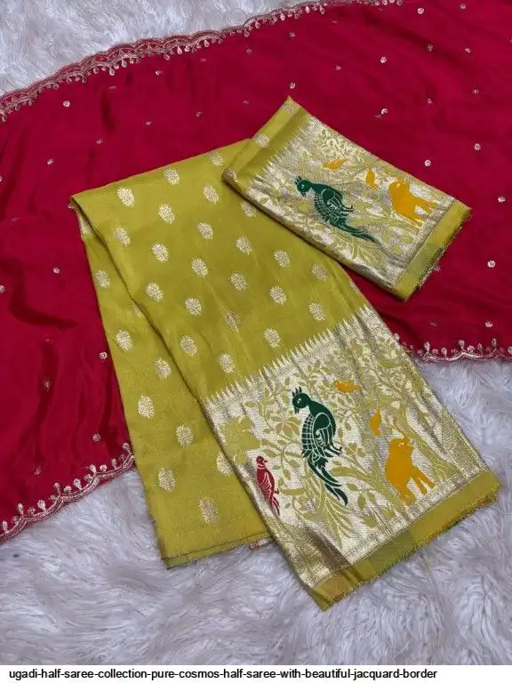 Pure cosmos half saree with beautiful jacquard border with same blouse Pair with Dupatta