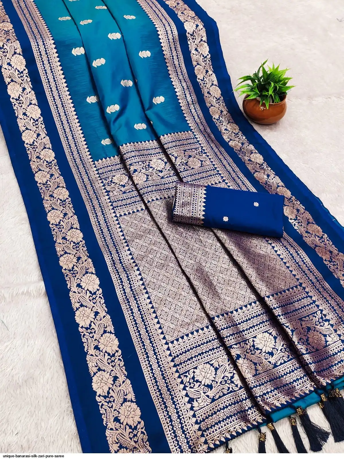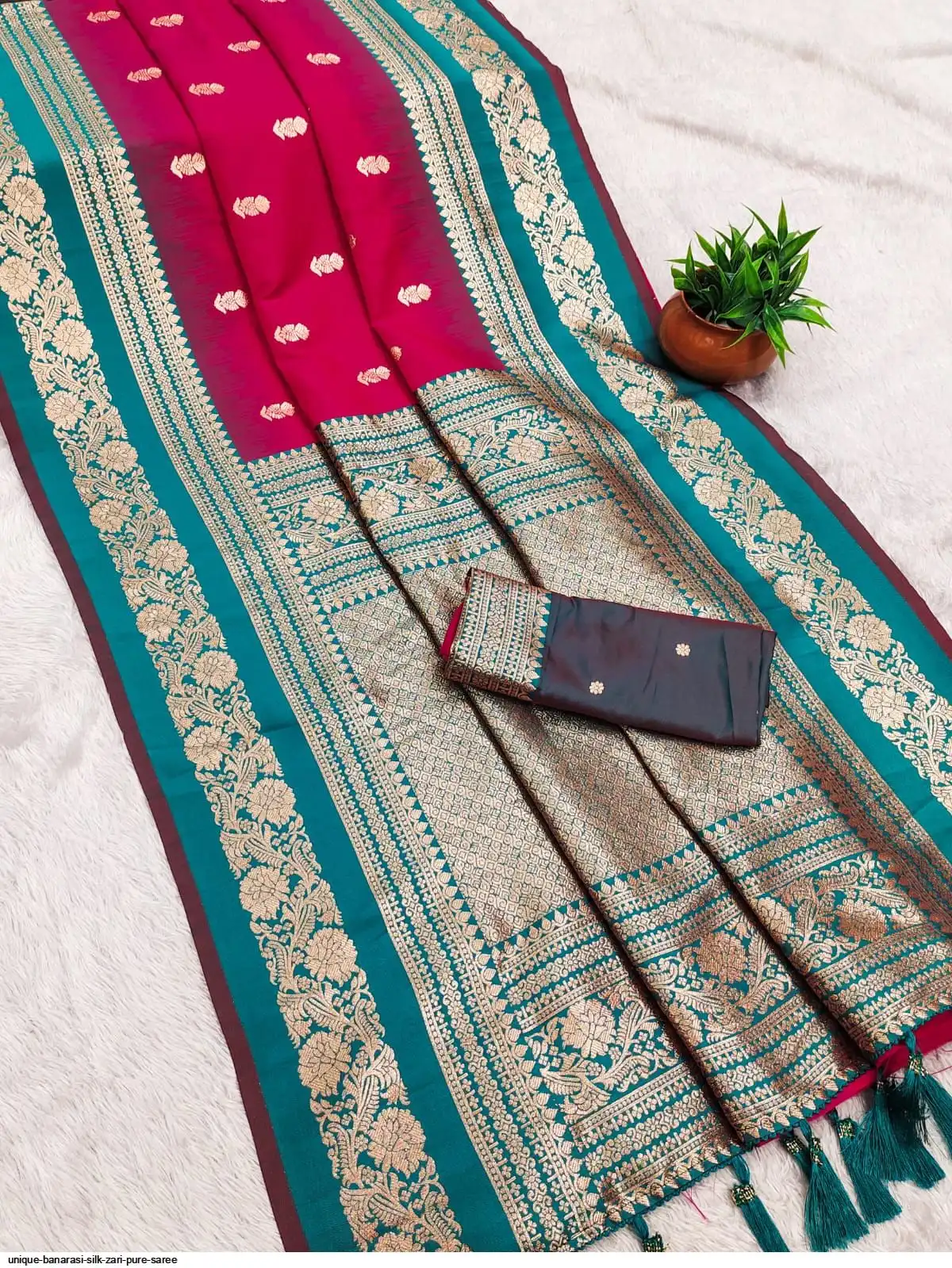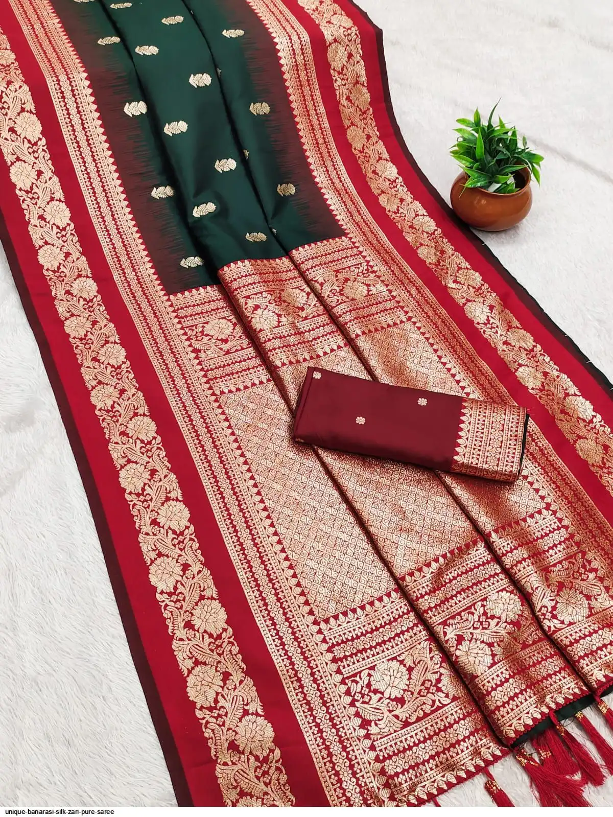 ORIJANAL PURE BANARASI ZARI AND RICH MINA WORK PALLU WITH ALL OVER BUTTI DIJAIN AND HEAVY CONTRAST BODER