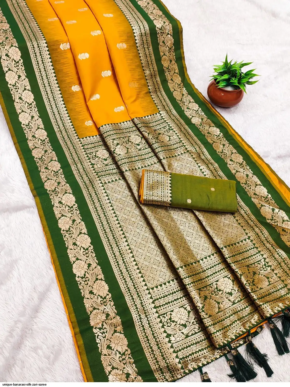 ORIJANAL PURE BANARASI ZARI AND RICH MINA WORK PALLU WITH ALL OVER BUTTI DIJAIN AND HEAVY CONTRAST BODER