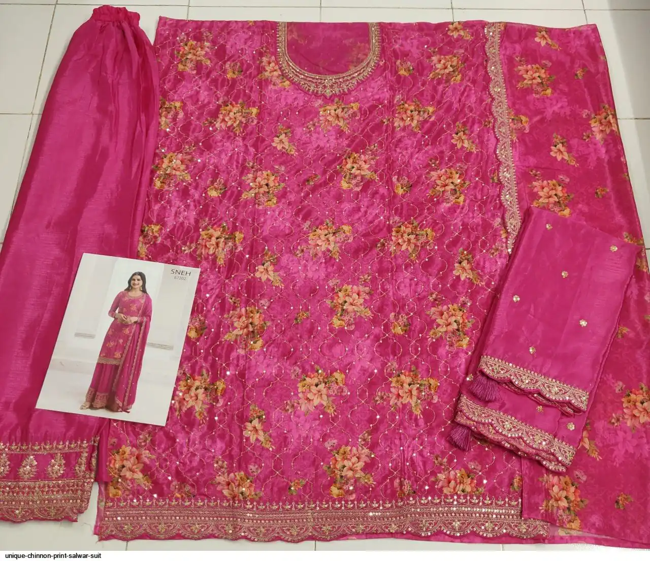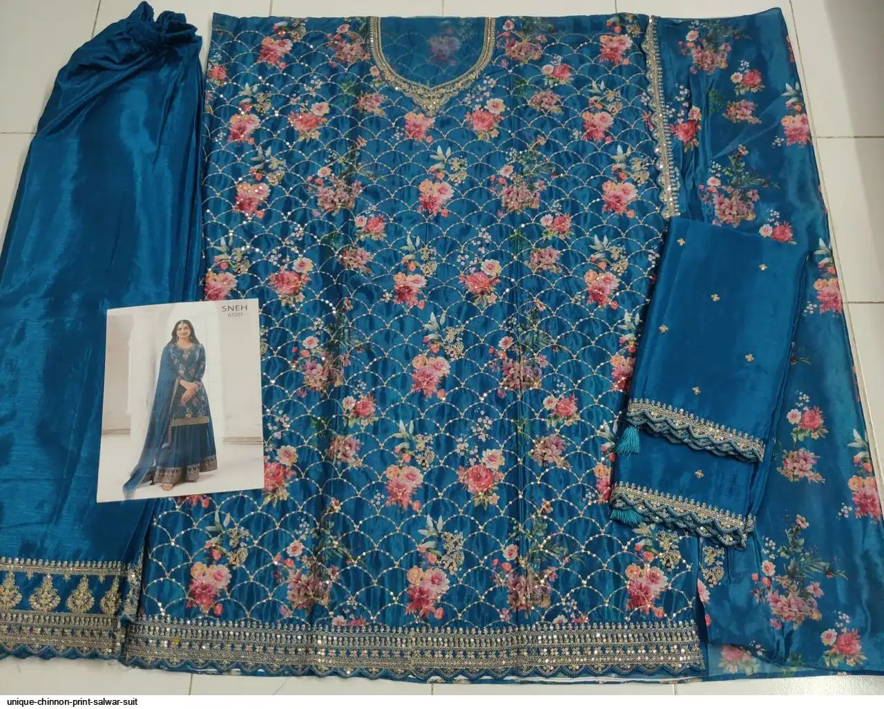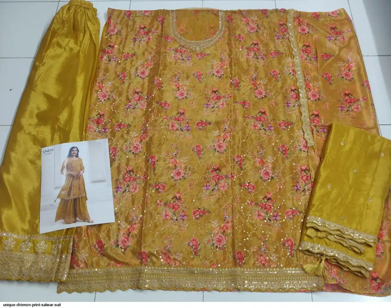 TOP :- Heavy ChiNnon Print with Emb.. work & Siquance Work