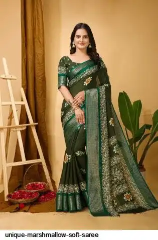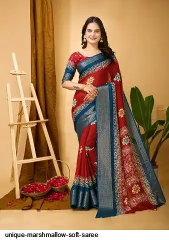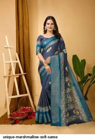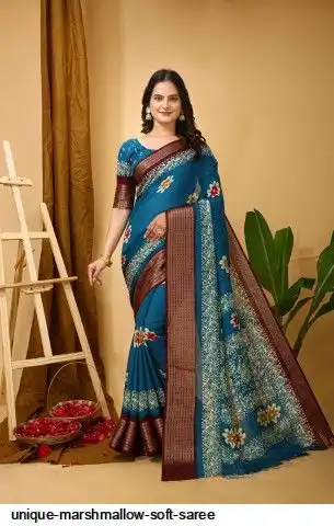 Fabric-Saree- soft marshmallow .(6.30m with print blouse)*