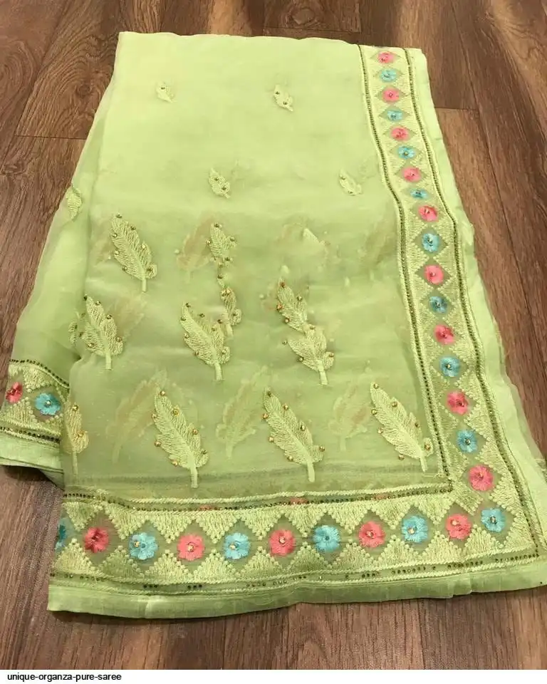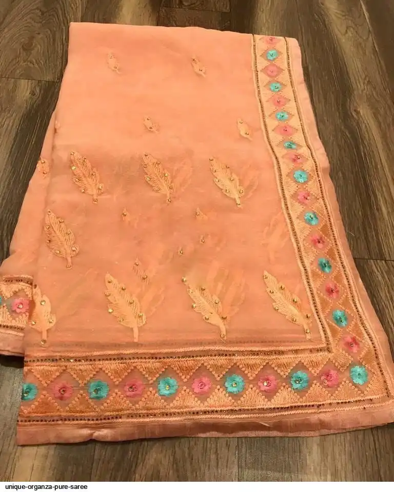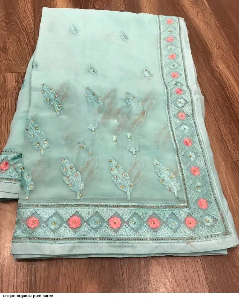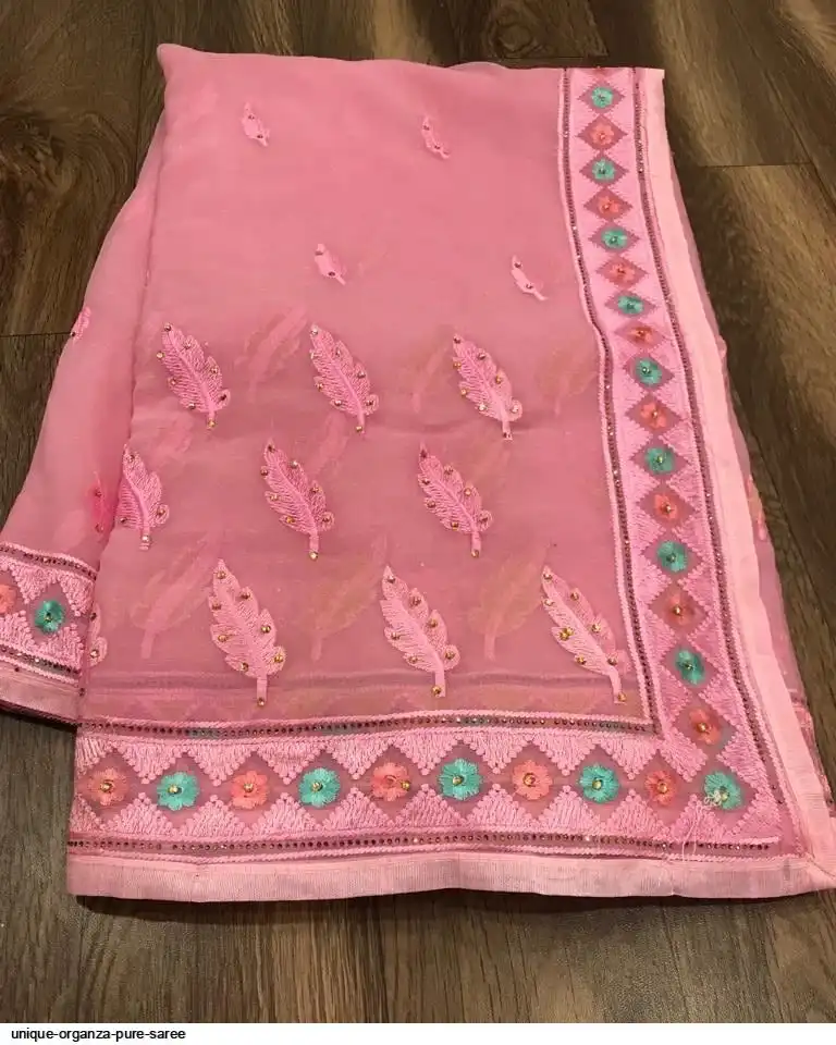 Semi pure organza saree with beautiful embroidery work touch up of diamond and matching plain silk blouse