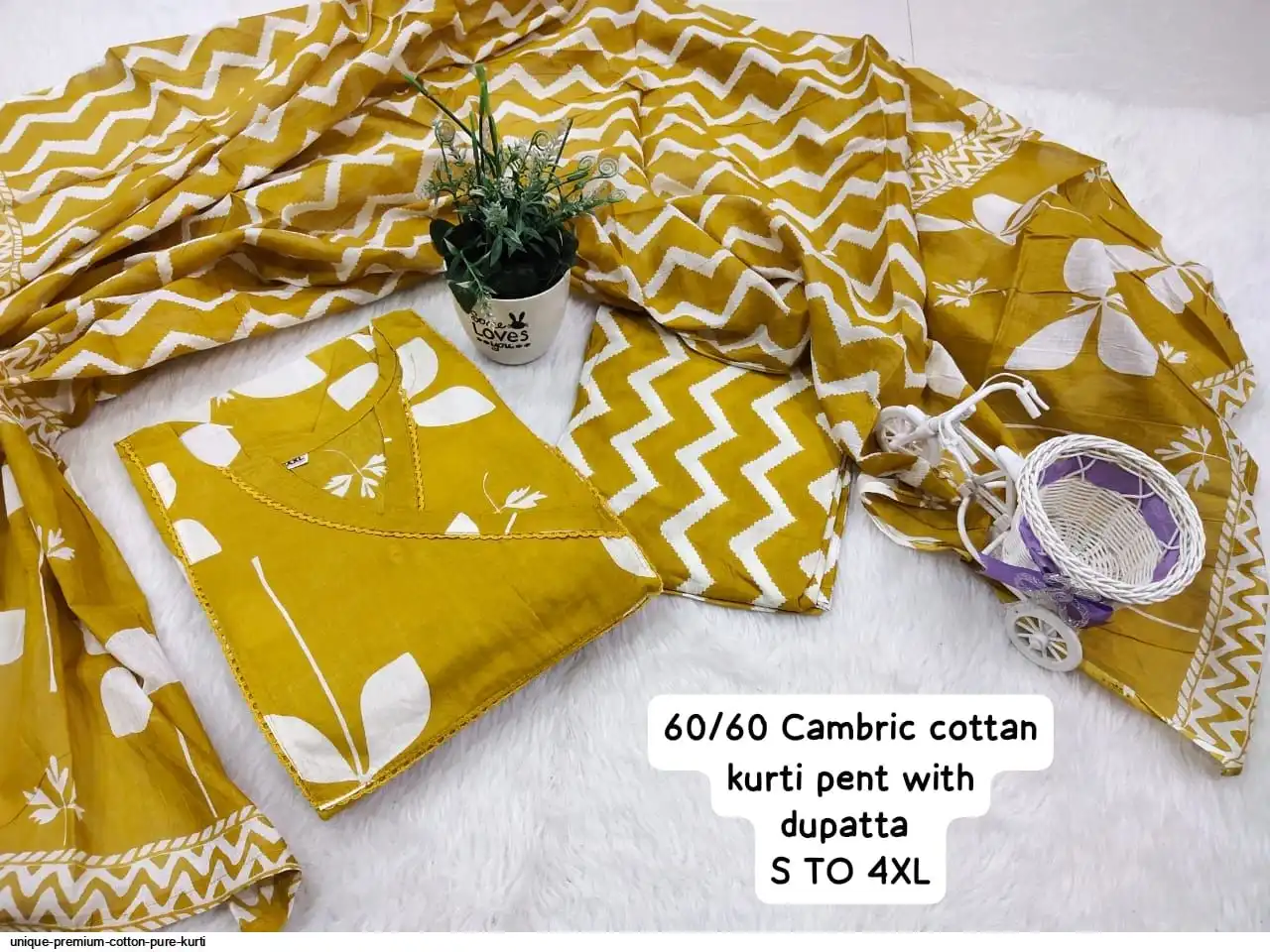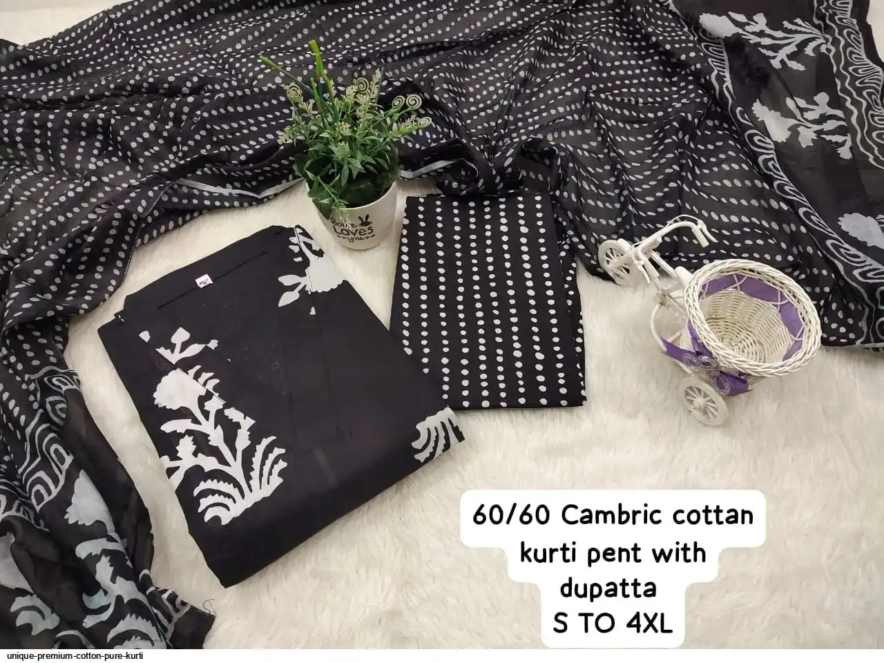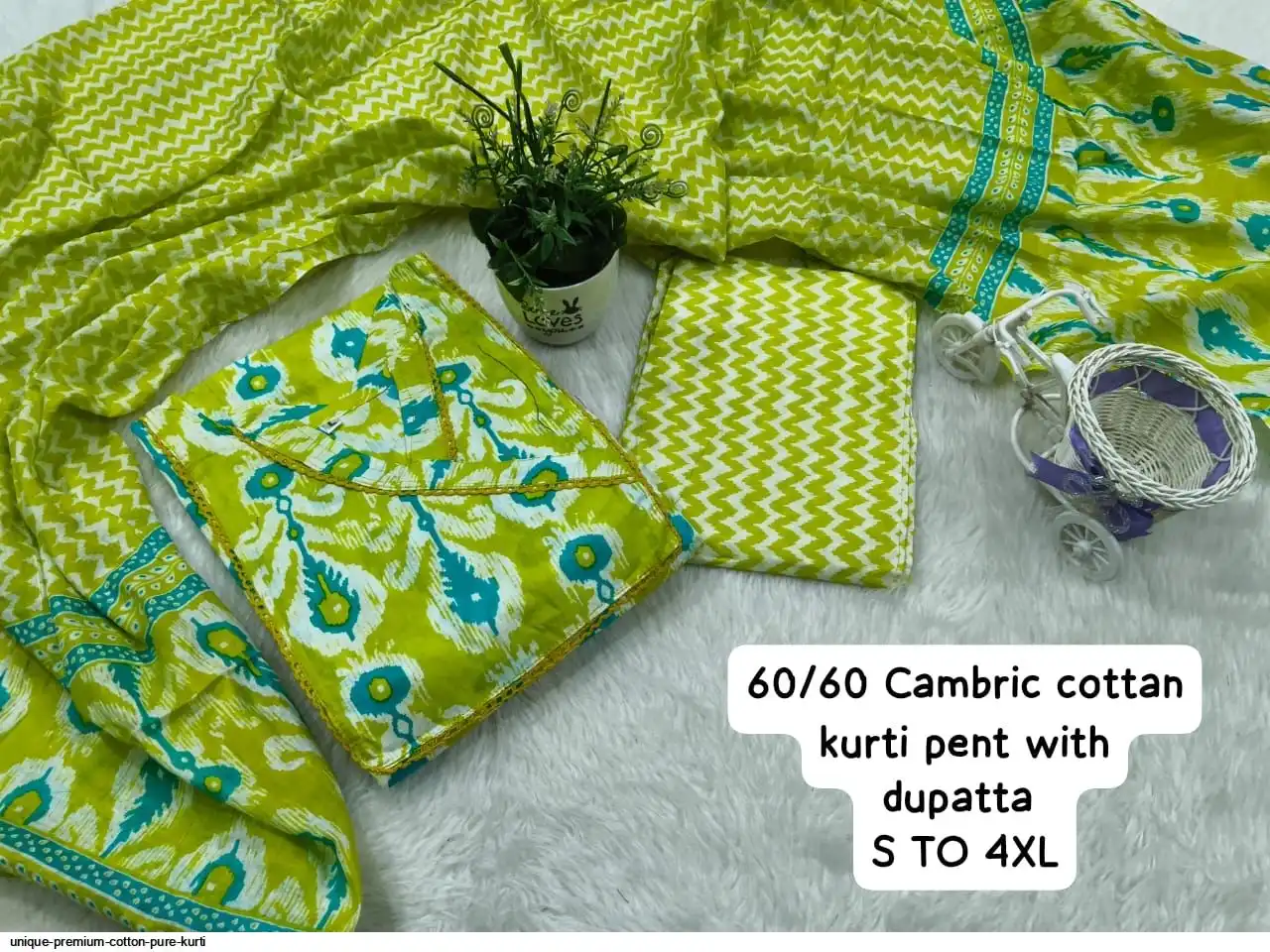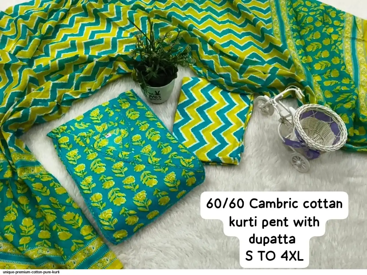Premium Jaipur cambric cotton kurti pant with dupatta