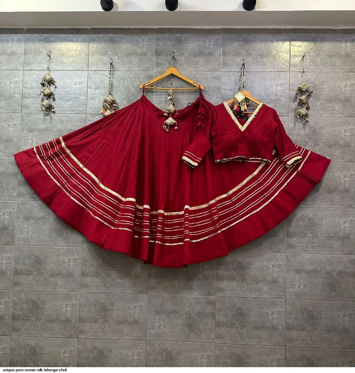 UNIQUE PURE ROMAN SILK LEHENGA CHOLI