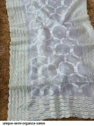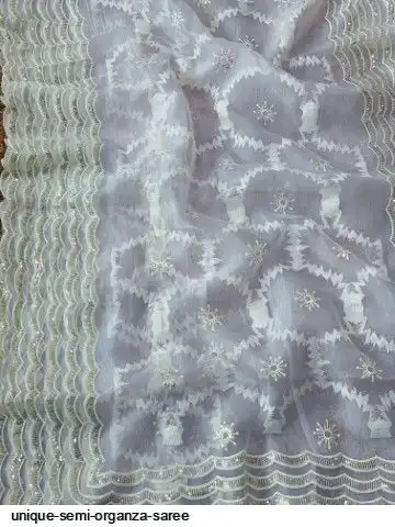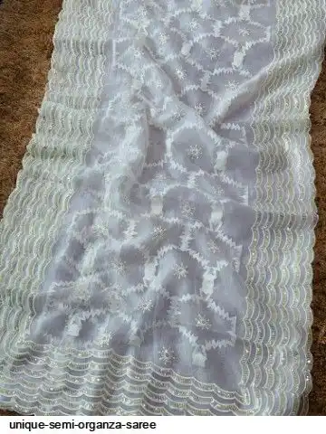 Semi pure organza saree with beautiful embroidery and sequence work and plain silk matching blouse