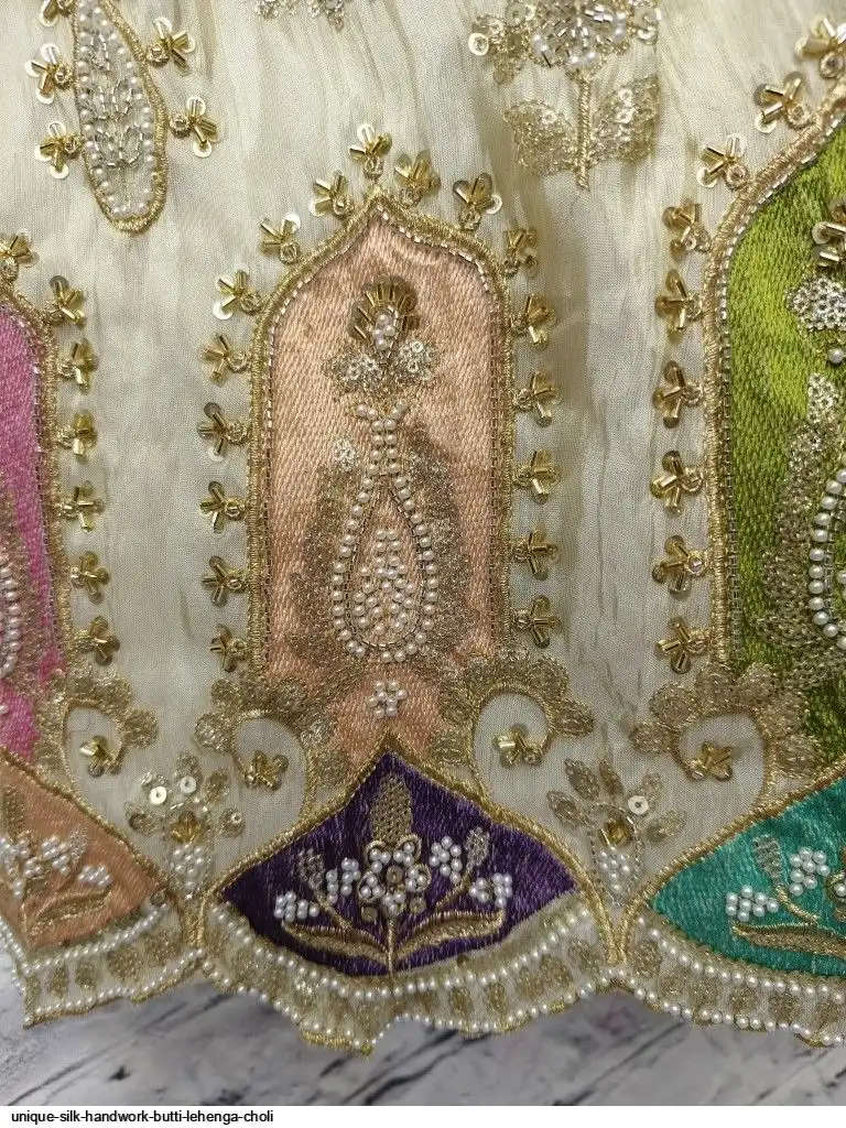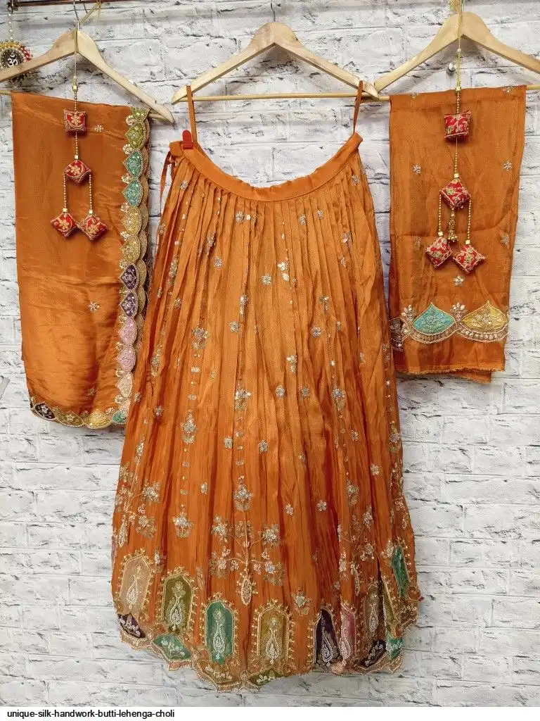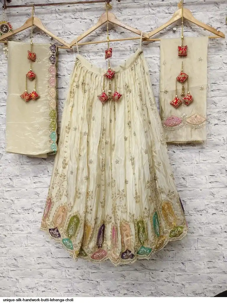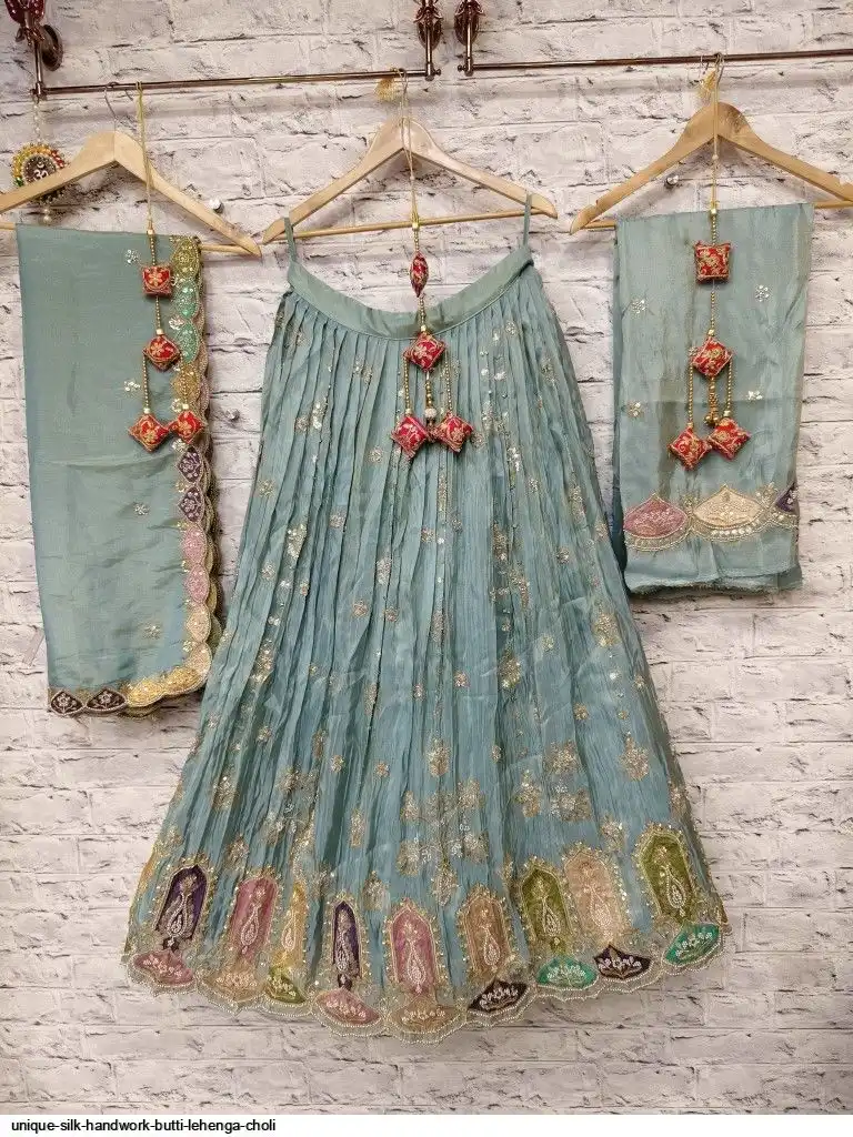 Pure tissue silk handwork butti concept with multi thread work chaniya with crush concept