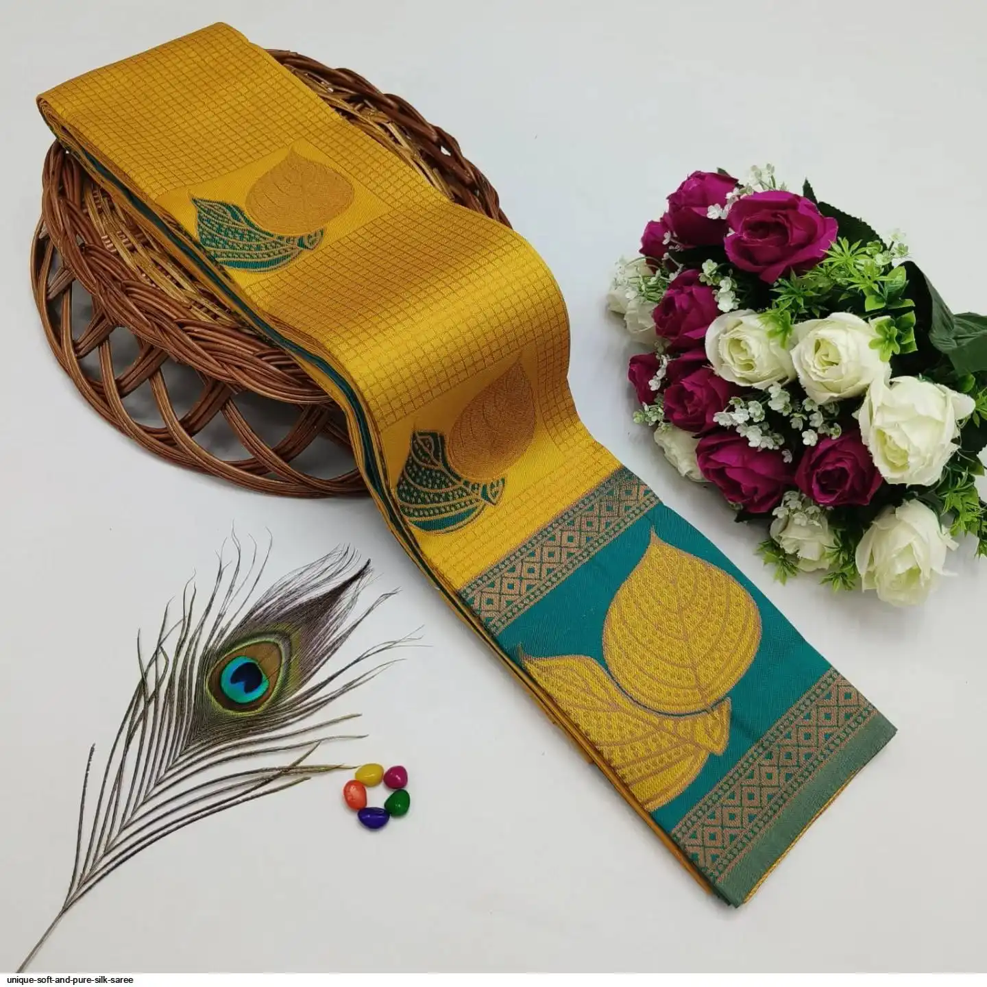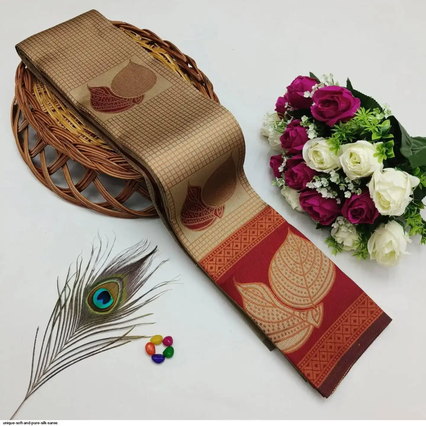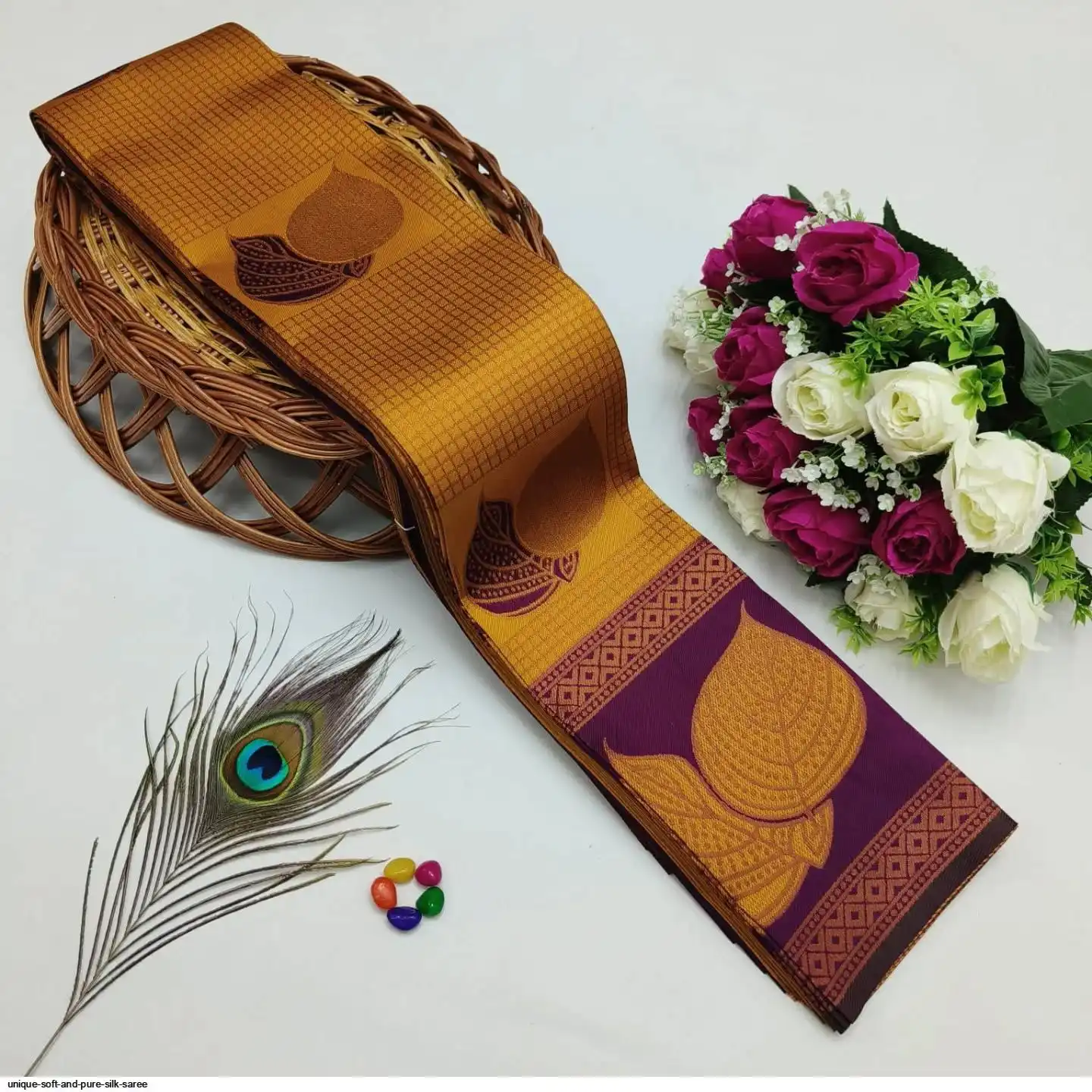 Saree :- Soft And pure banarasi silk saree with FLOWERS AND MINA design all over the saree & zari weaving Rich pallu with zari weaving unique border & heavy rich Pallu.