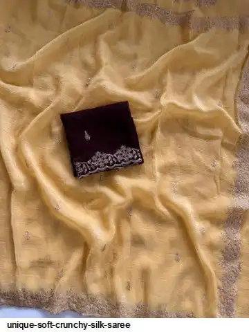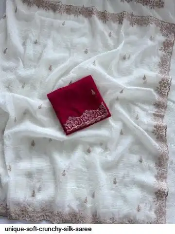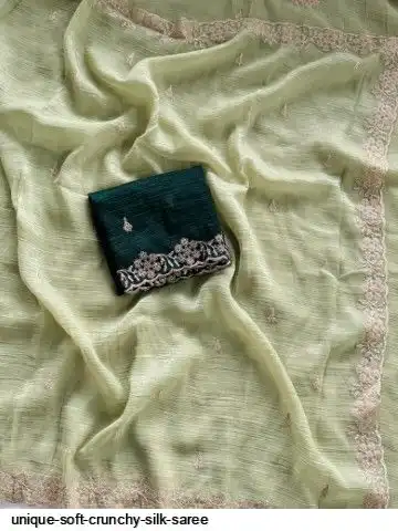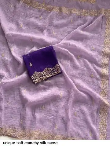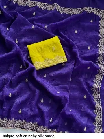 Soft crunchy silk saree with beautiful heavy embroidery work and running blouse with work