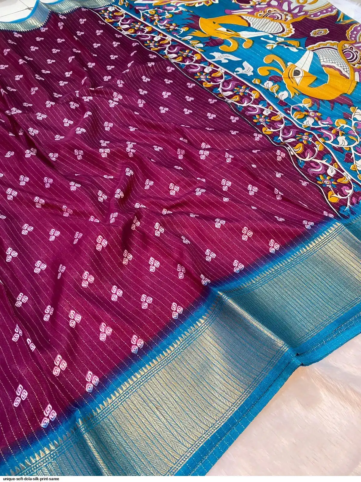 Fabric-Saree- soft dola silk .(6.30m with print blouse)*
