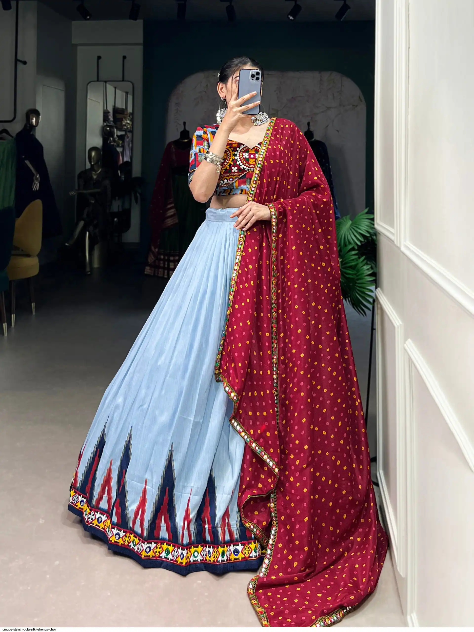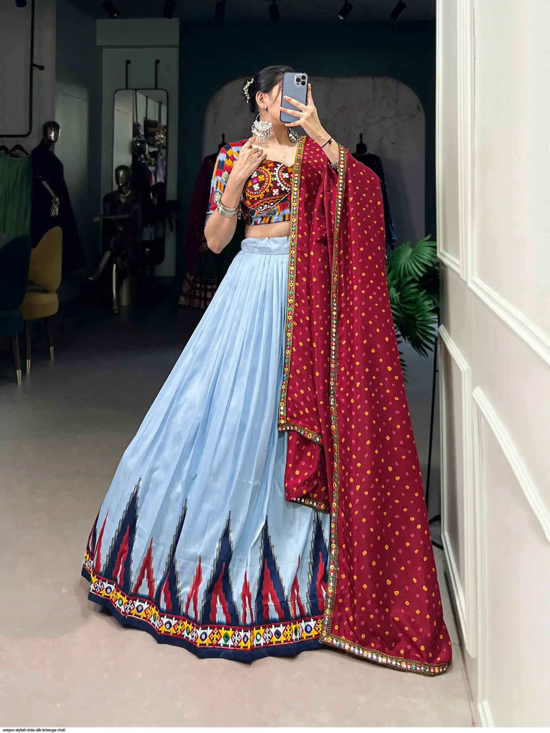 Lehenga Work : Print With Foil Work And Original Mirror Gamthi Lace Border