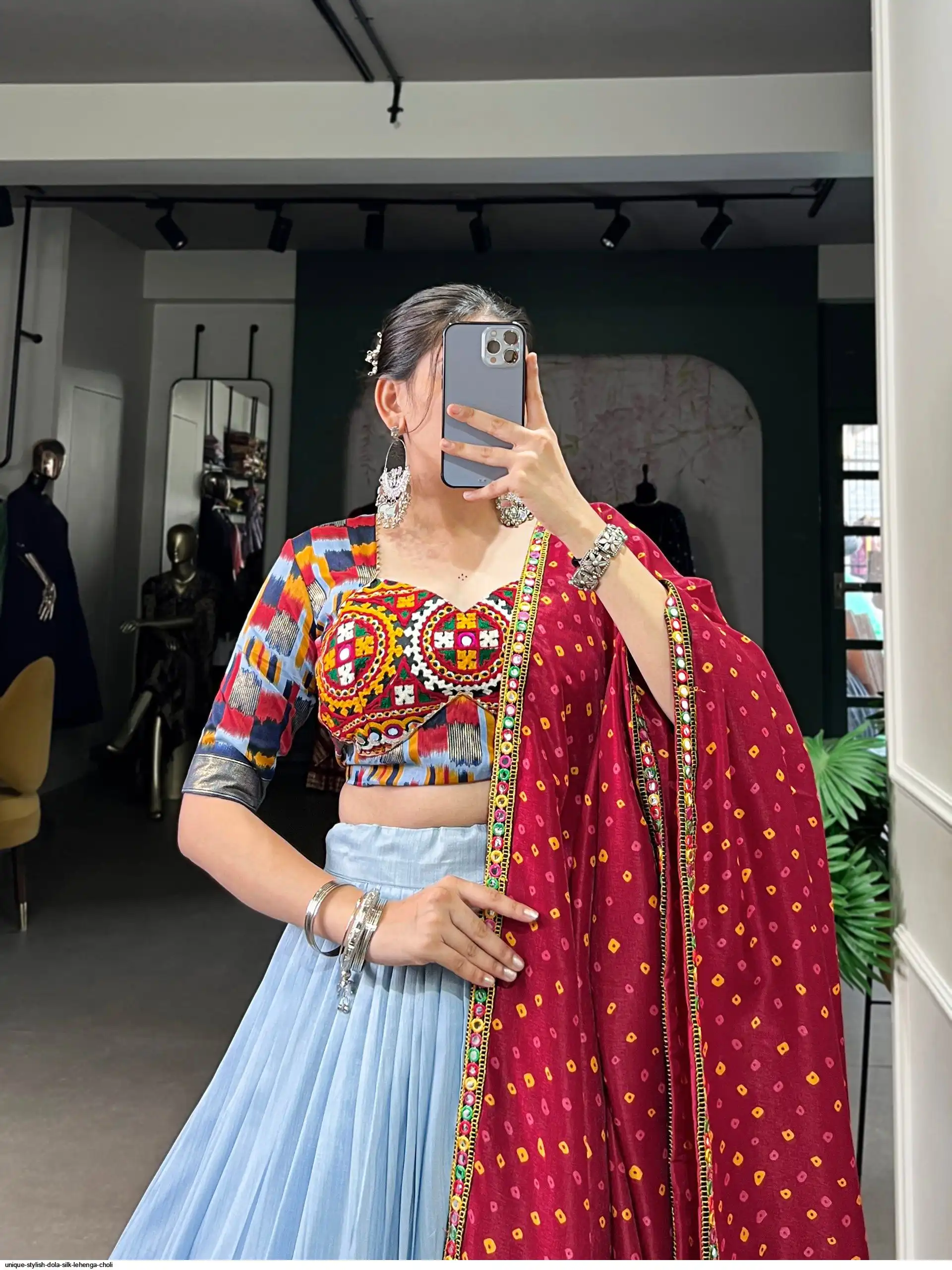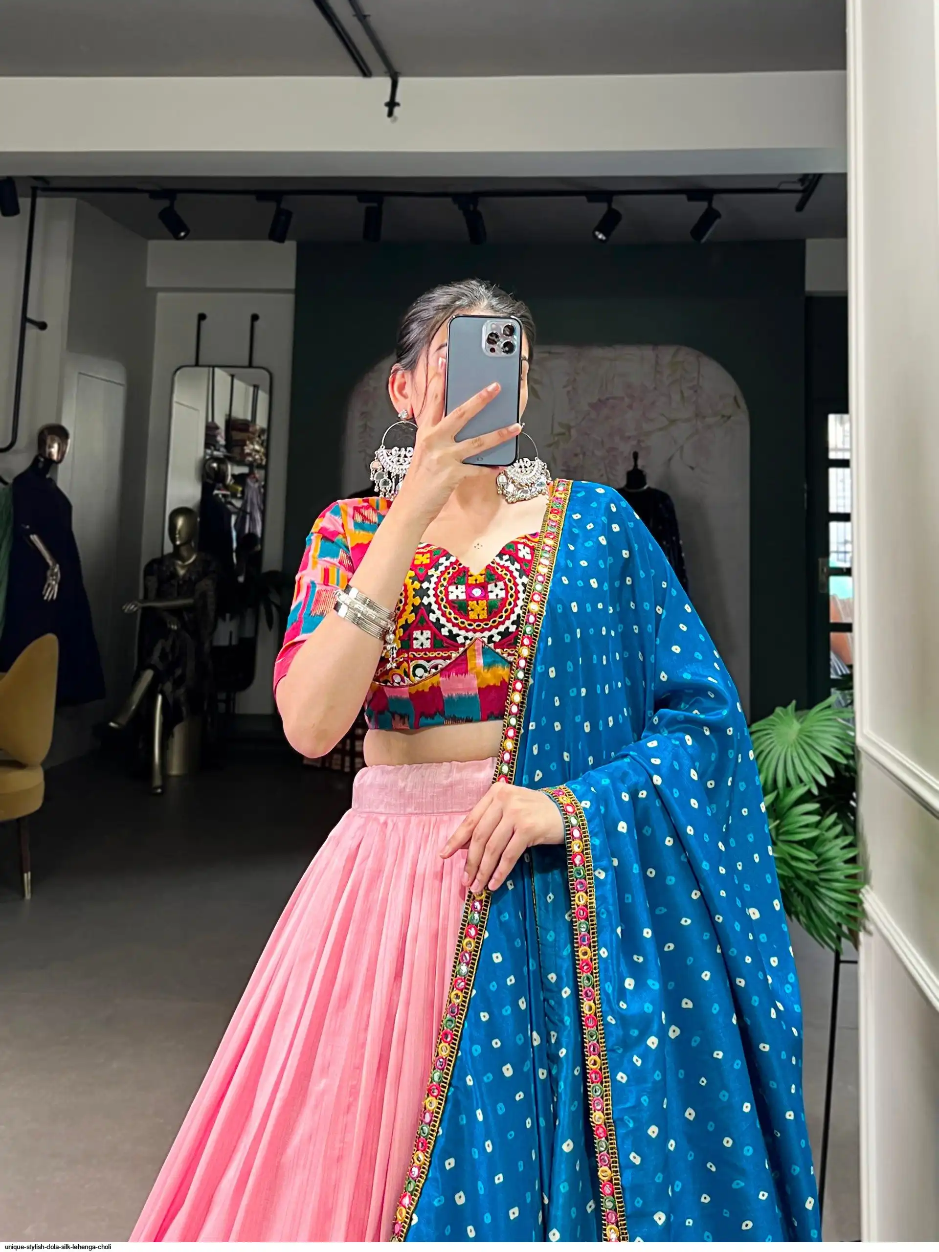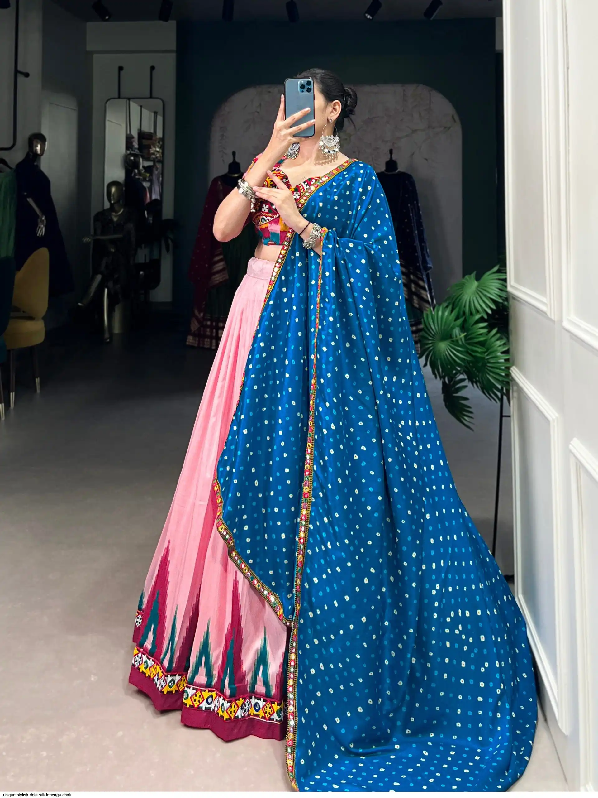 Dupatta Work : Bandhej Print With Peper Mirror Gamthi Lace Border
