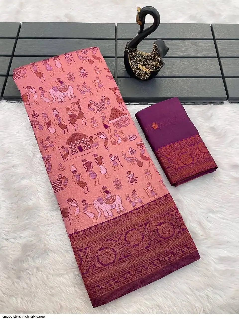 Most Stunning Triple Weaving Zari Concept Tissue Sarees . This concept Sarees is best for Party and wedding Occasion.This Tissue Kanchi Sarees is made of Pure Copper Zari and Self Design with contrast Colour Meena makes Sarees Adorable