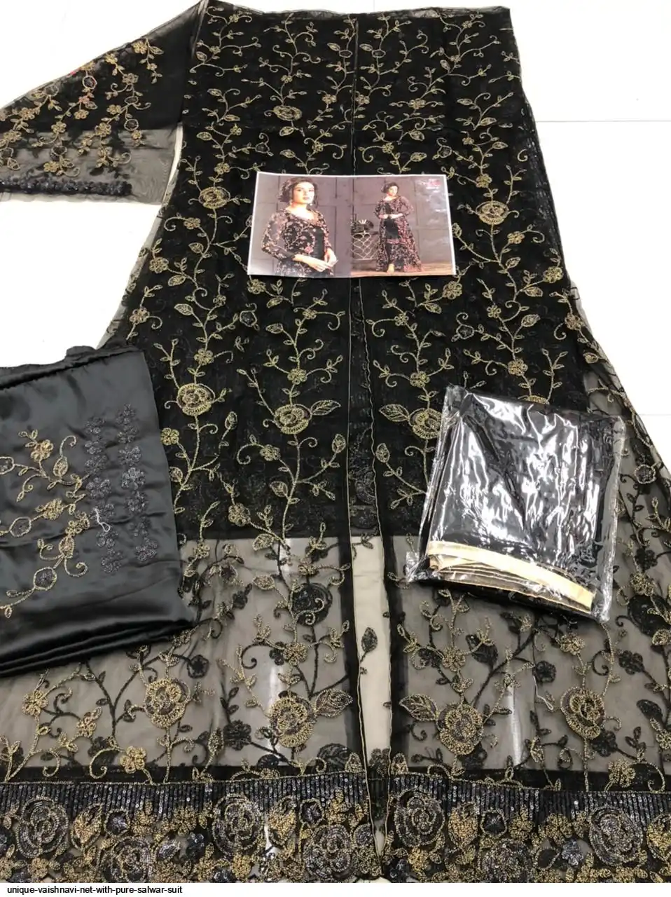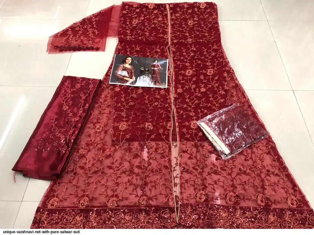 Bottom :- Heavy Net Satin with + sequence+ EMB work+Coding Work