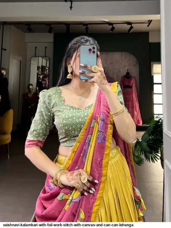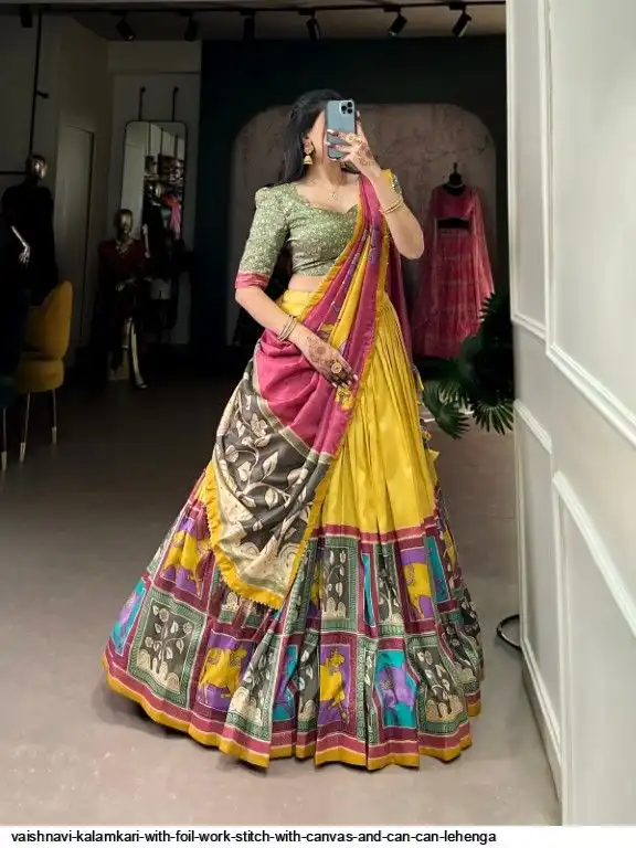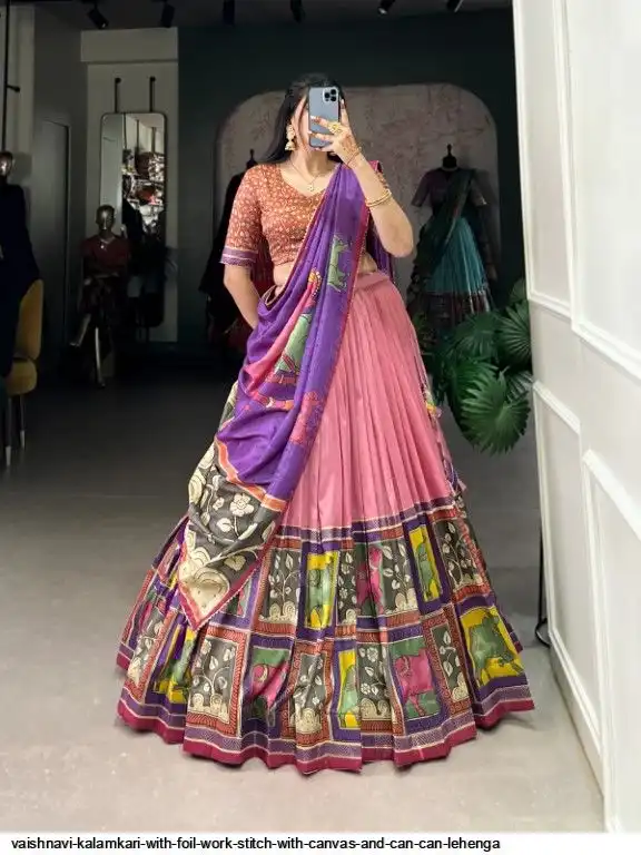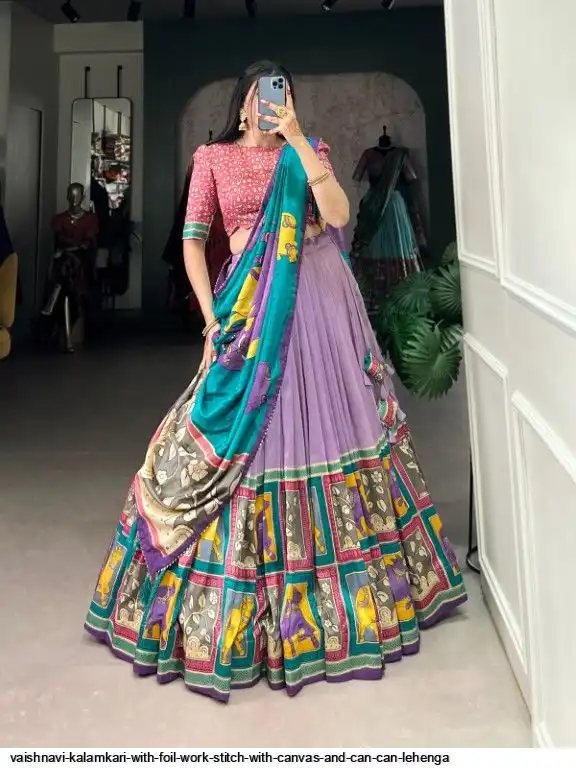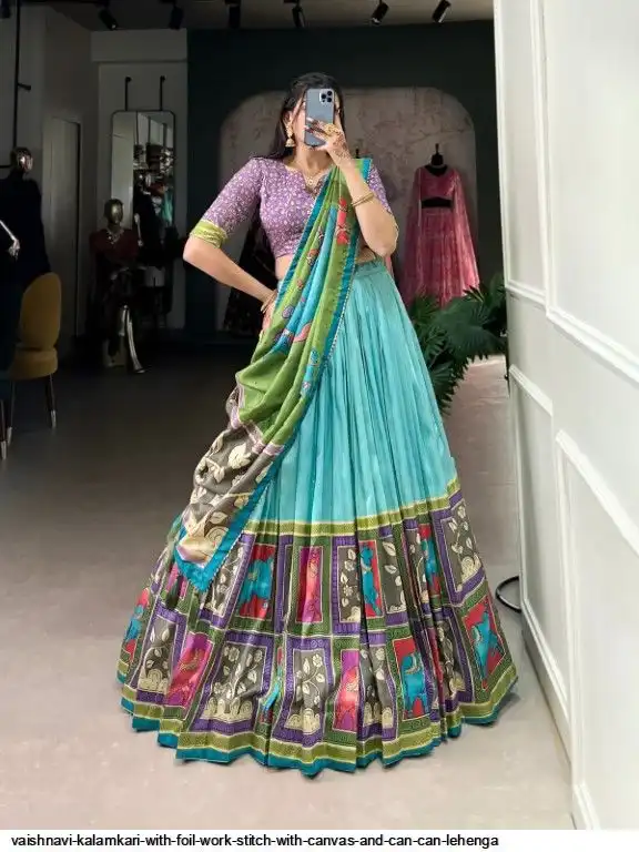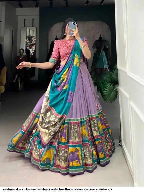 Lehenga Work : Kalamkari With Foil Work