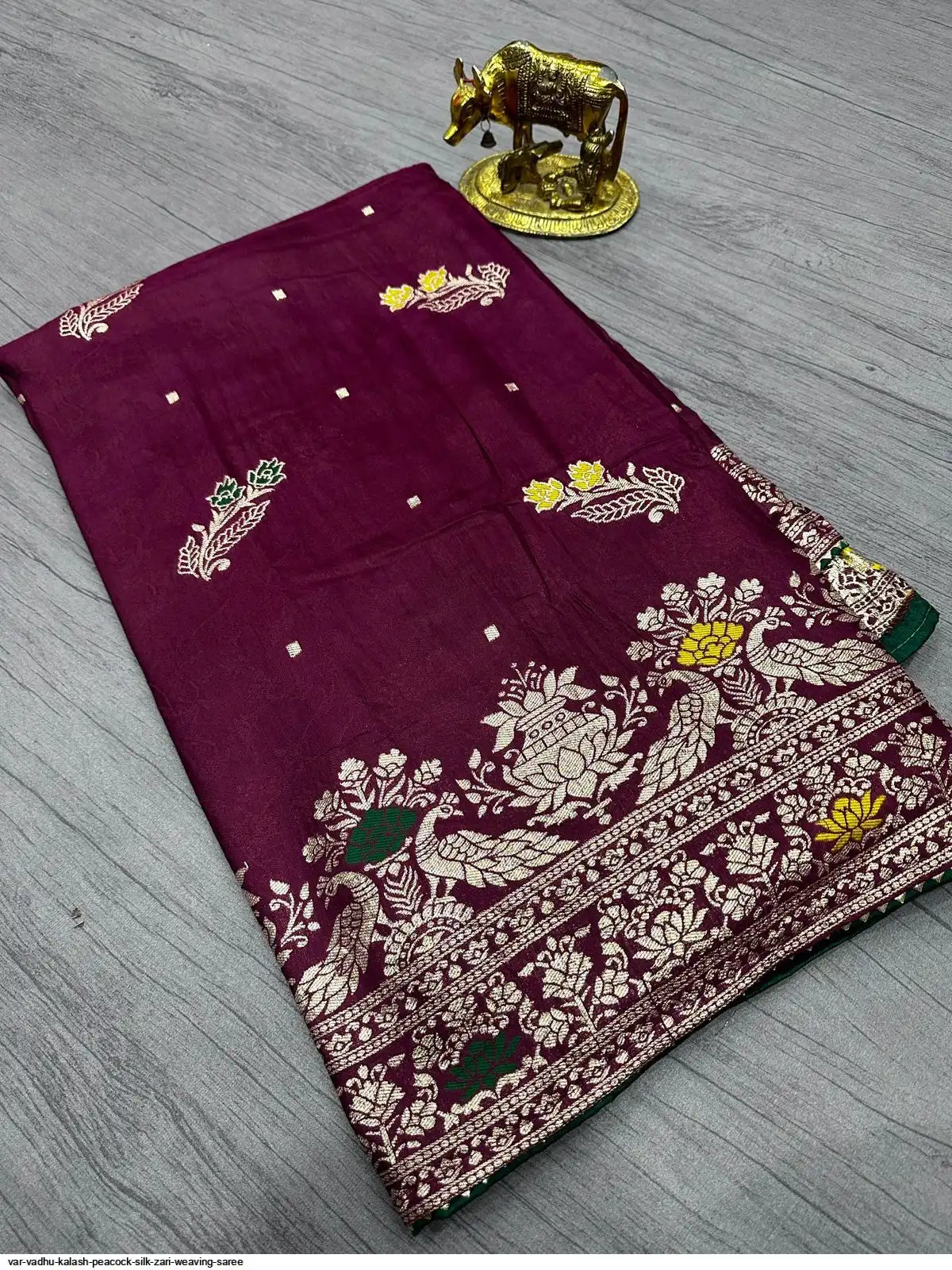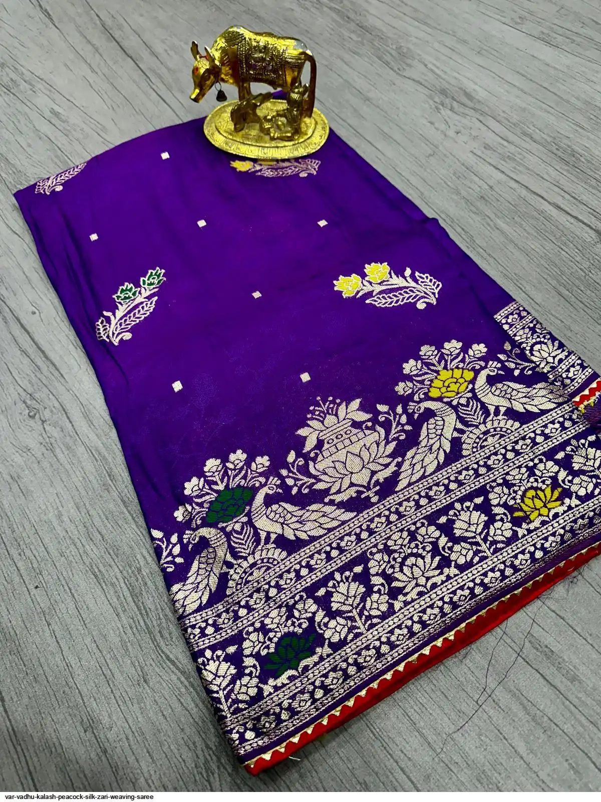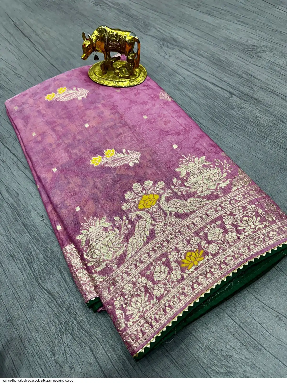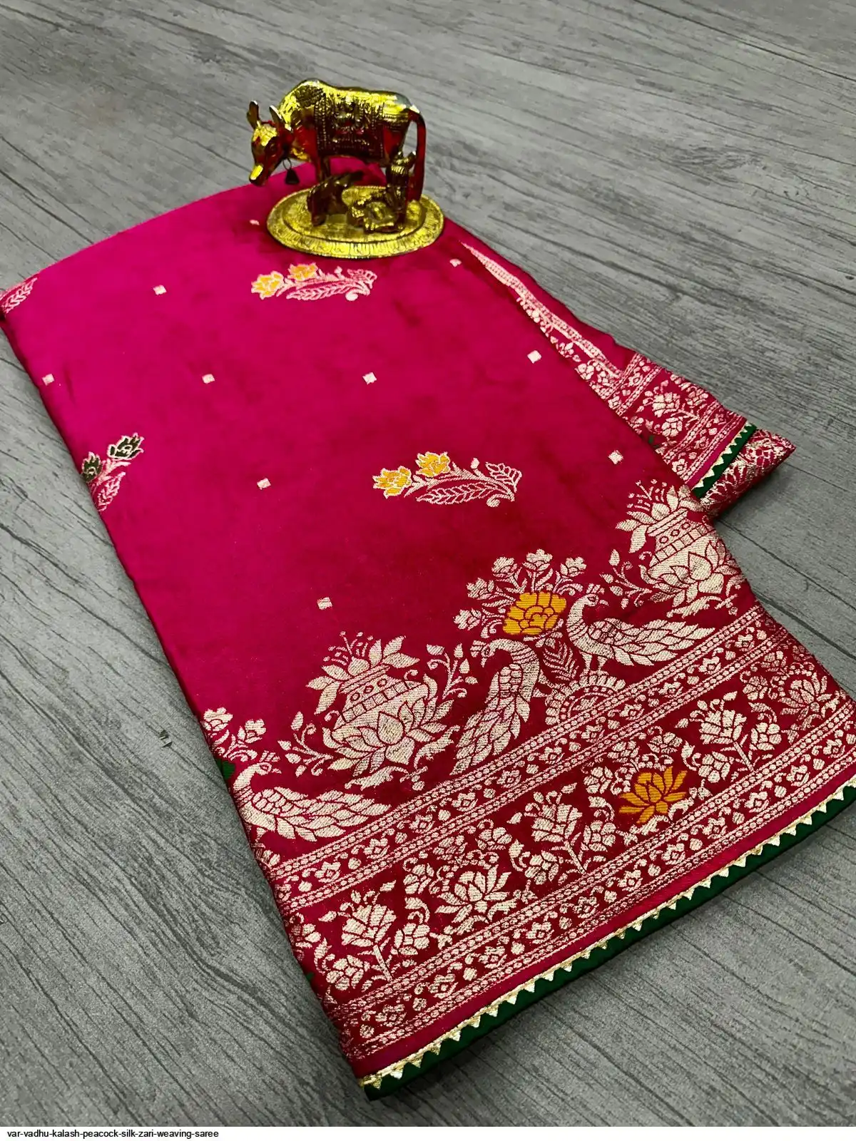 Saree :~ Pure Dola silk with Zari weaving Saree with zarkan Pallu  border &  samosa lace border