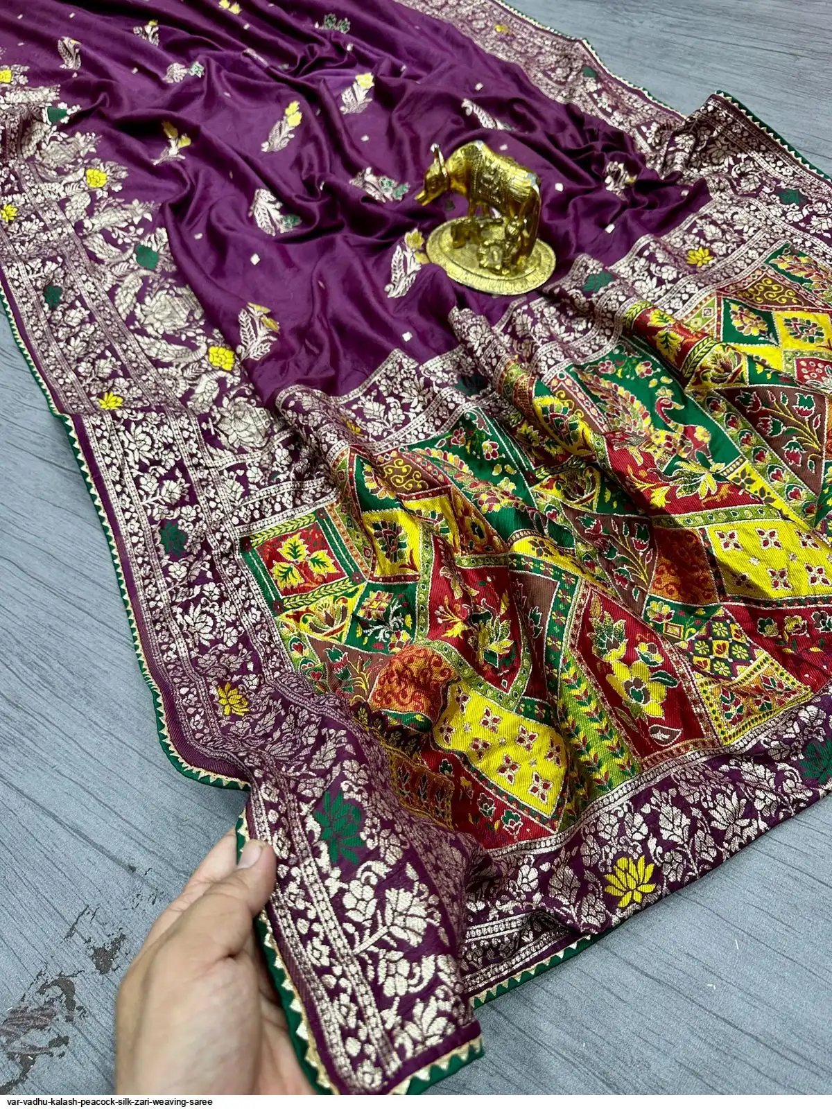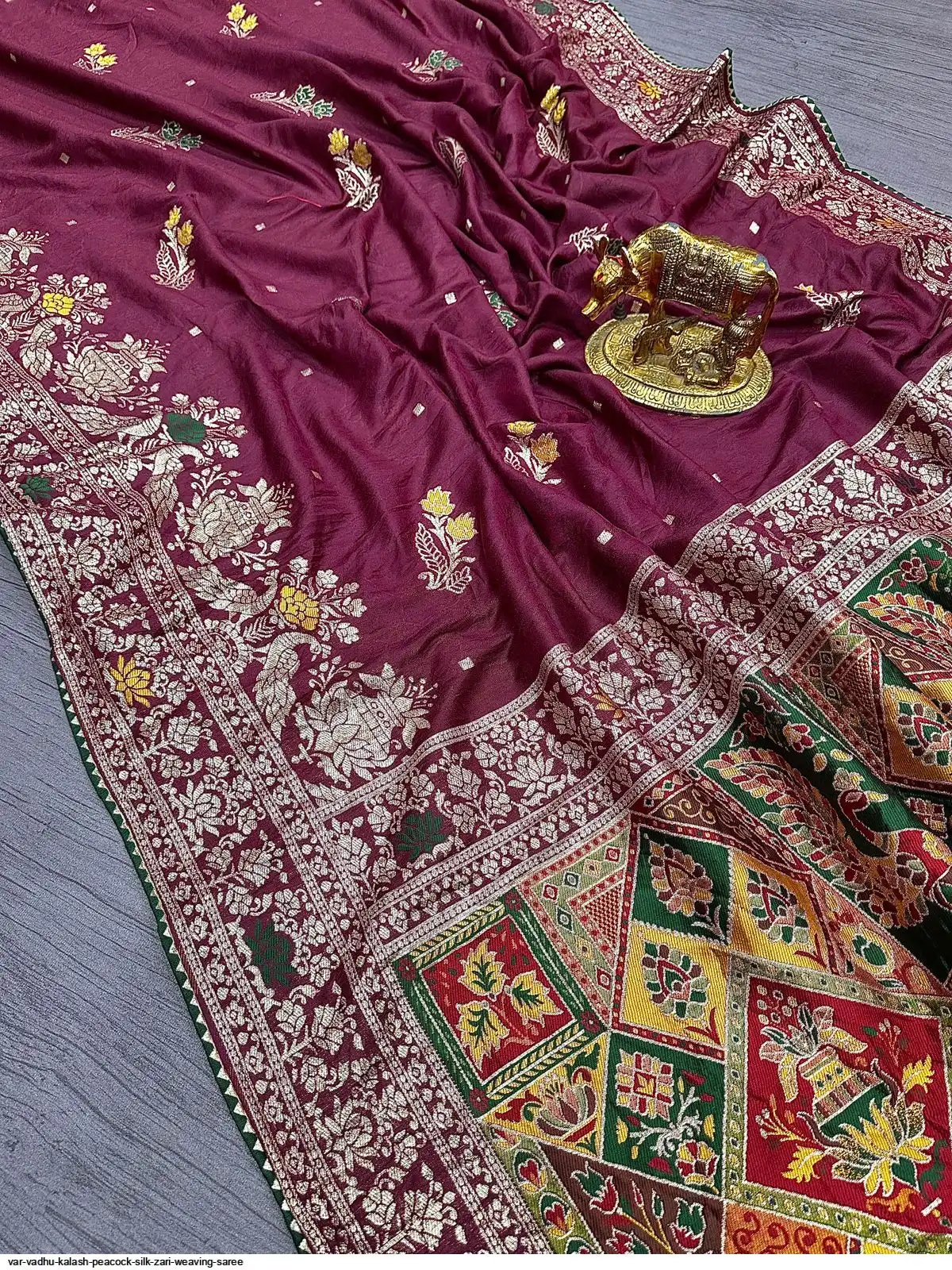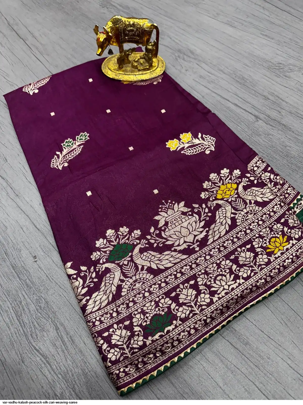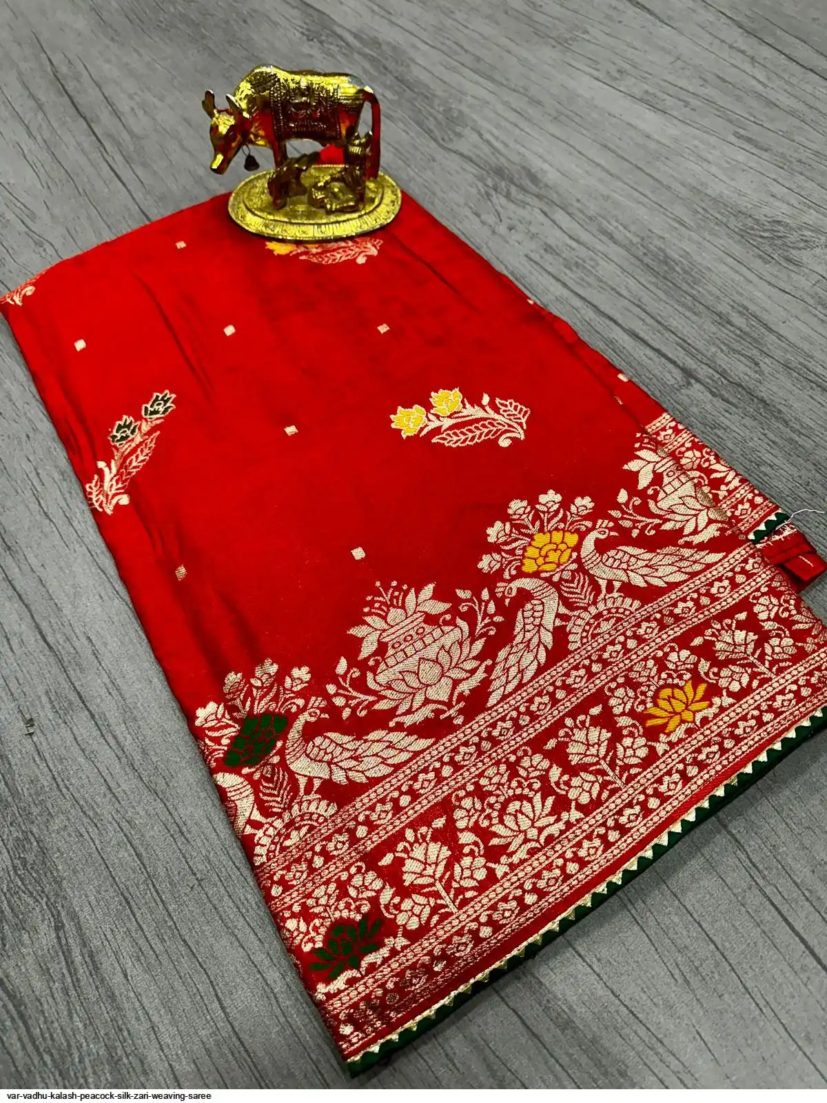 Saree :~ Pure Dola silk with Zari weaving Saree with zarkan Pallu  border &  samosa lace border