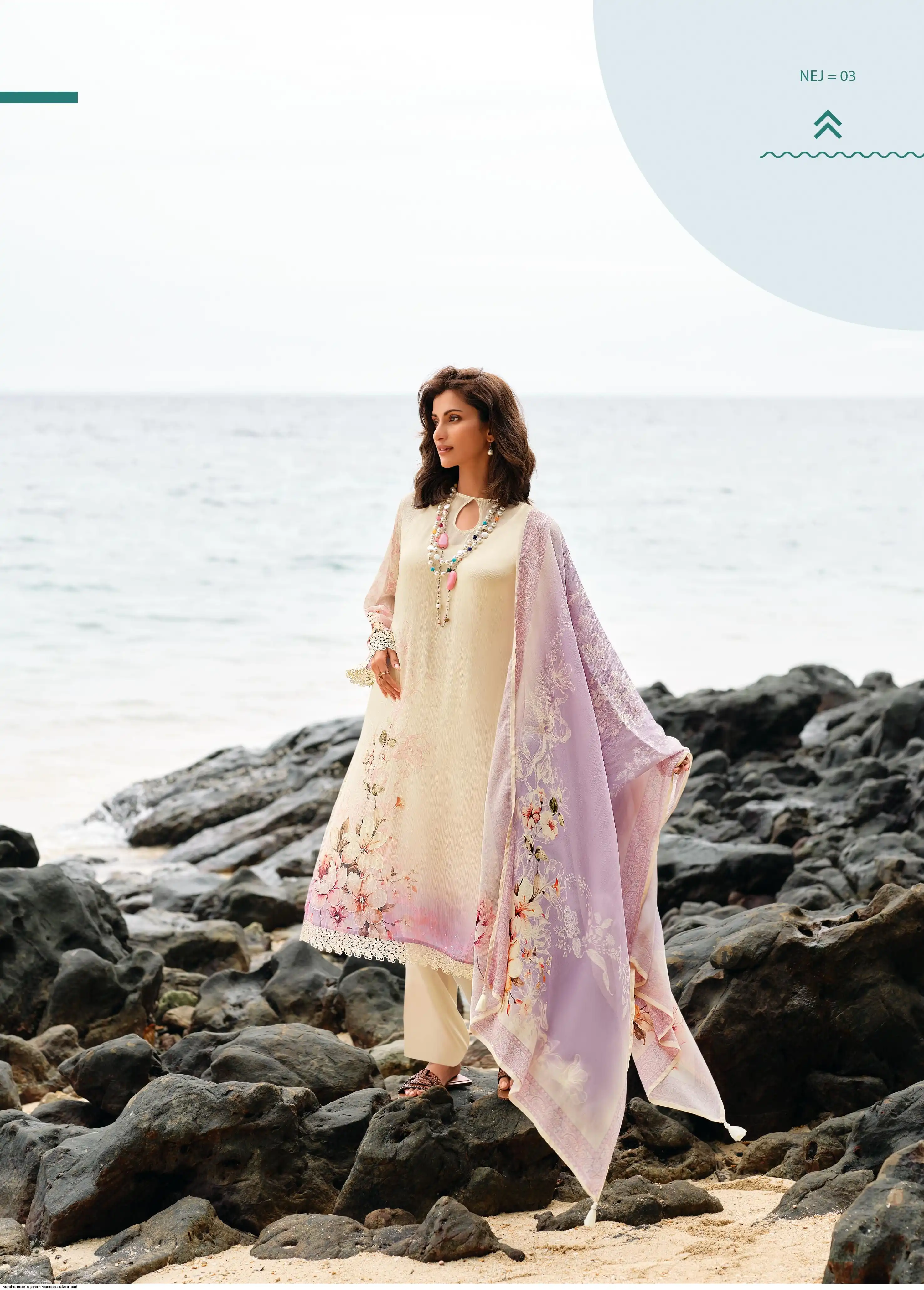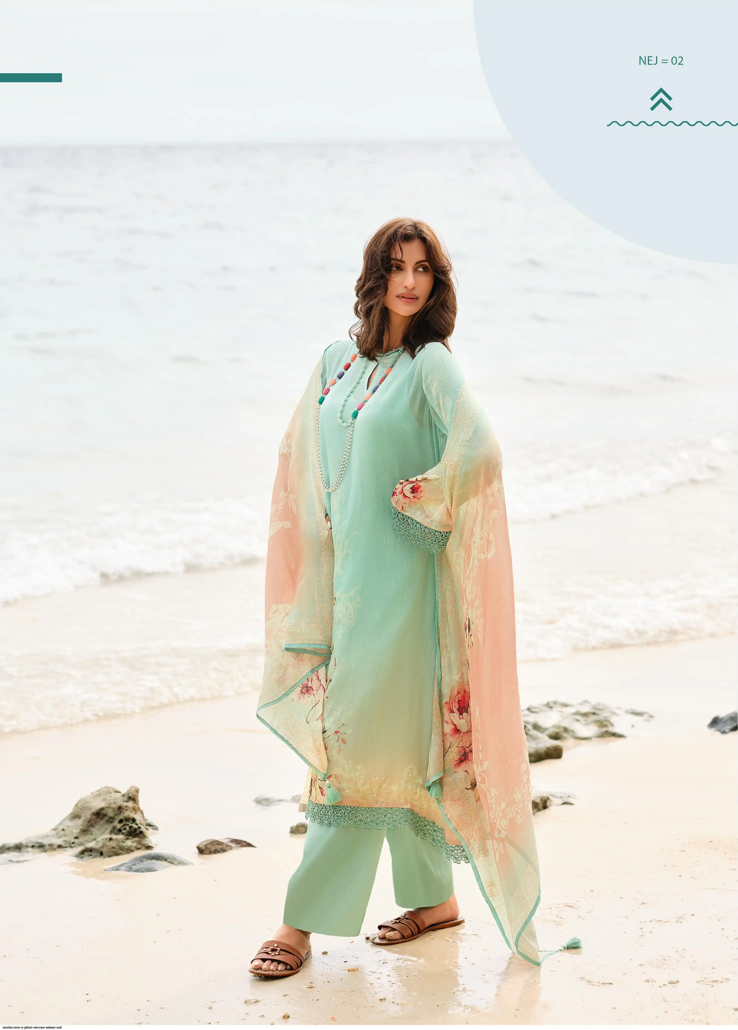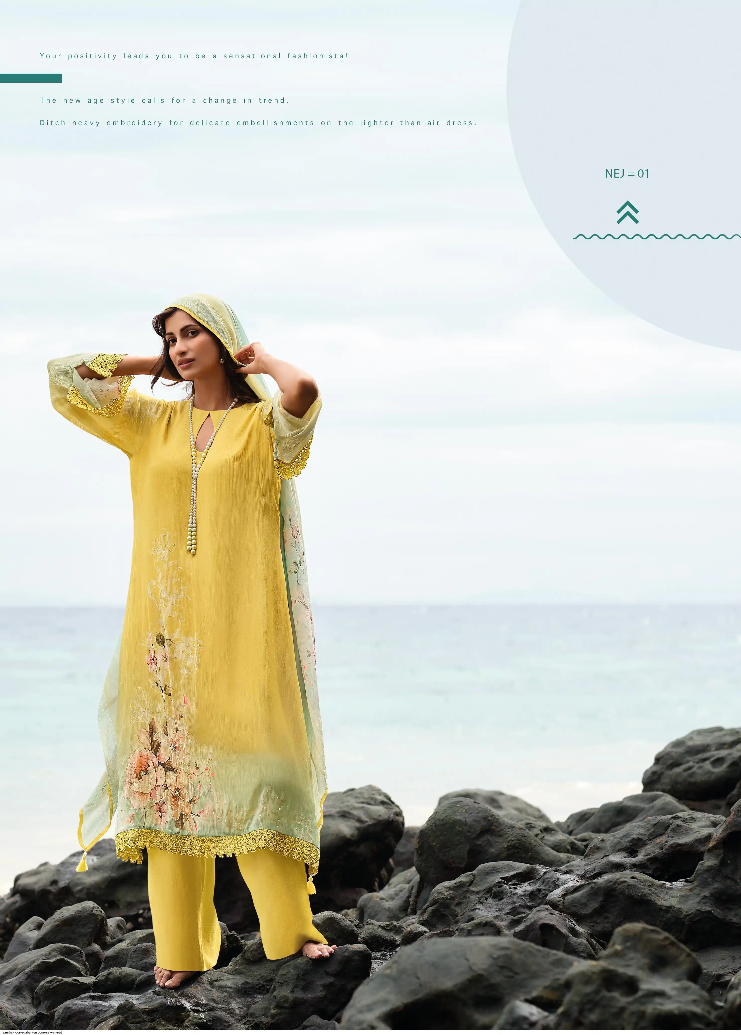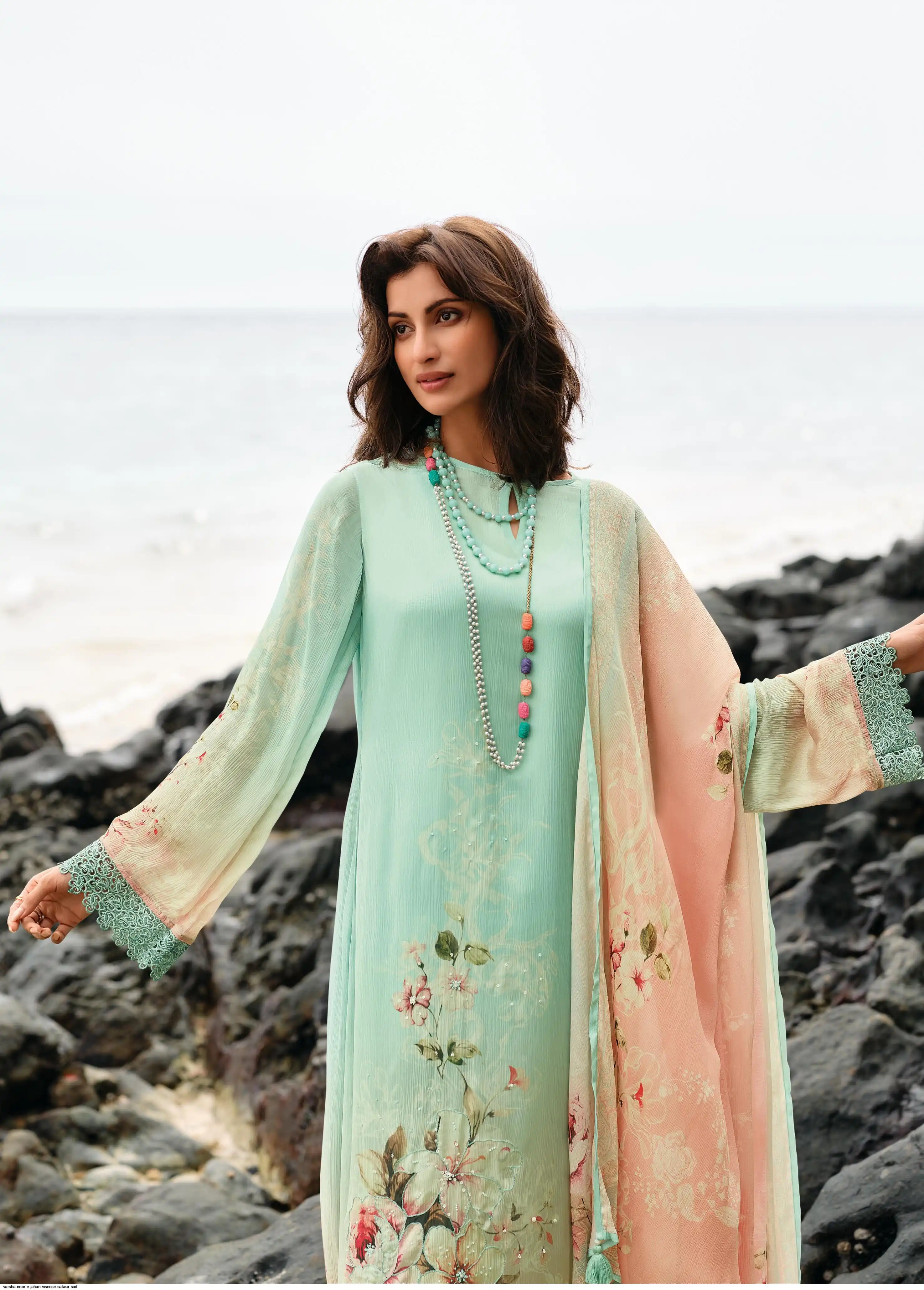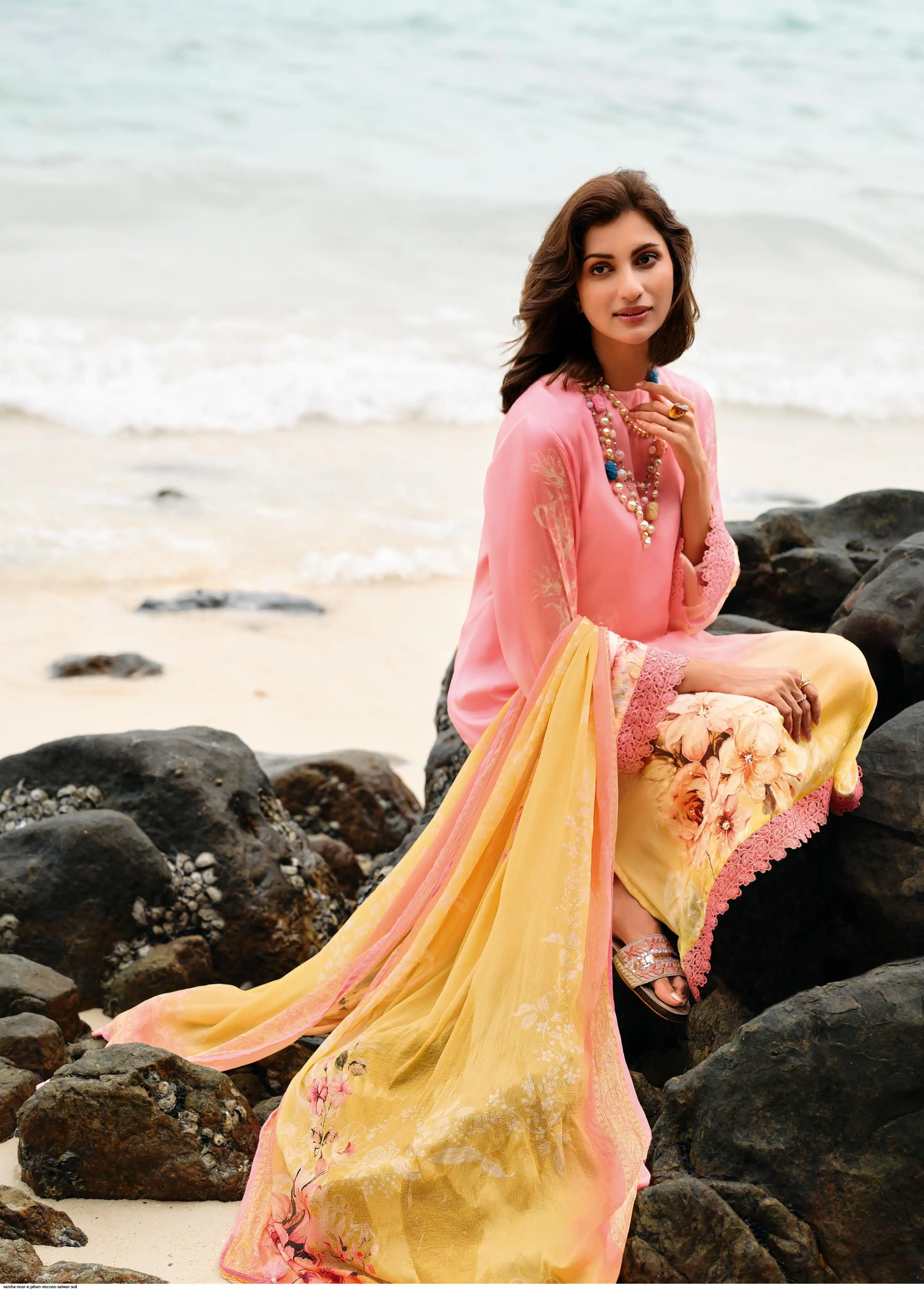 VISCOSE CHINNON DIGITALLY PRINTED WITH HANDWORK AND LACE