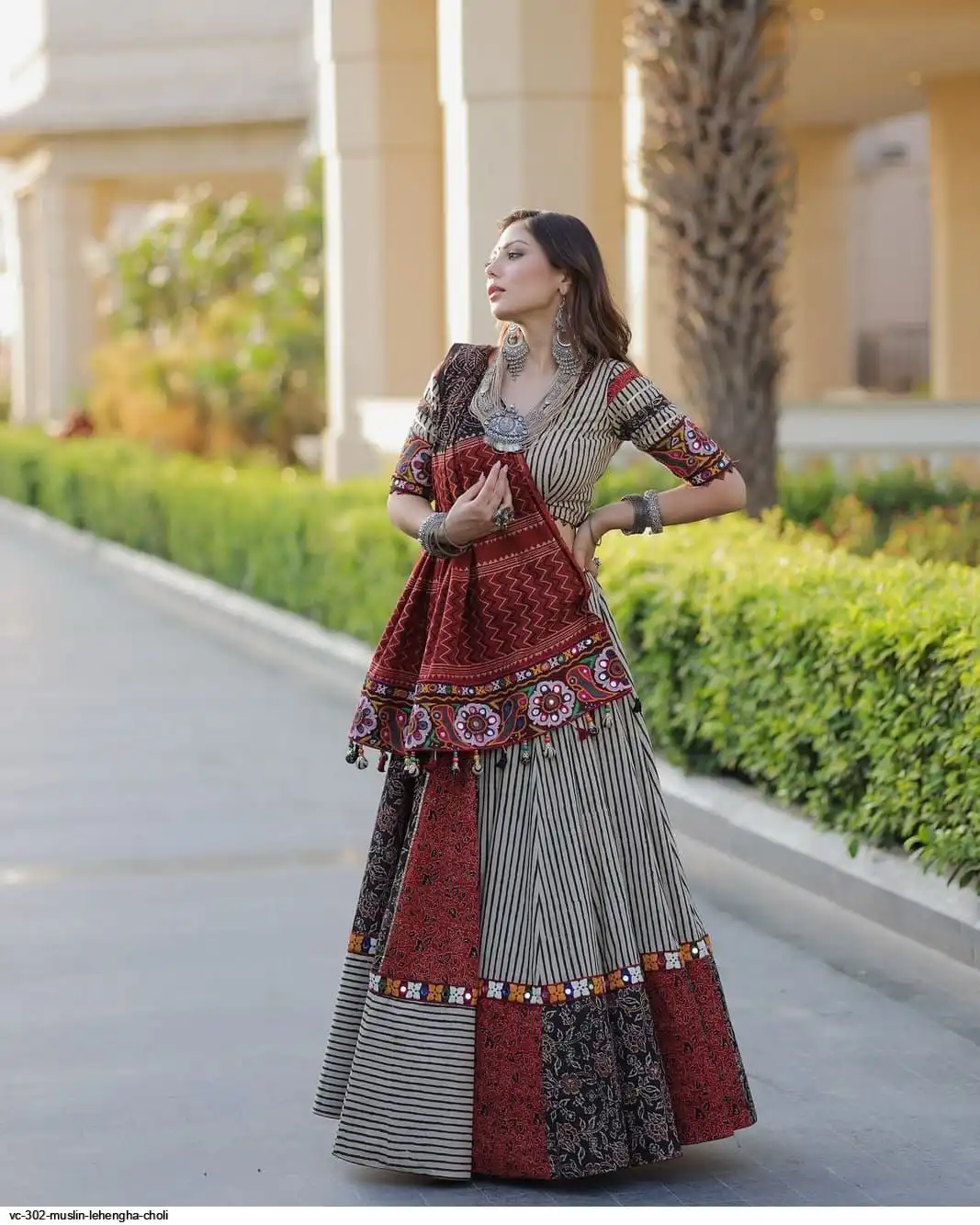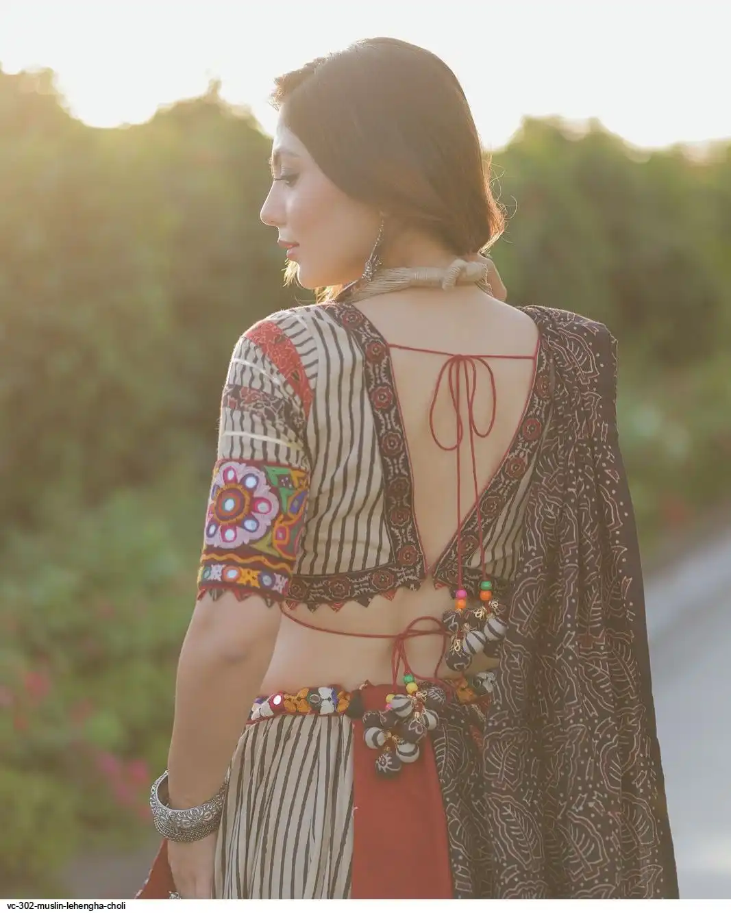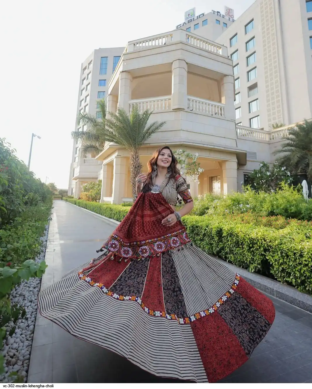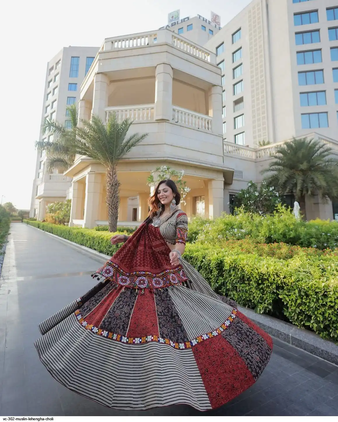 New Lounching Digital Print Muslin Silk Lehenga Choli .