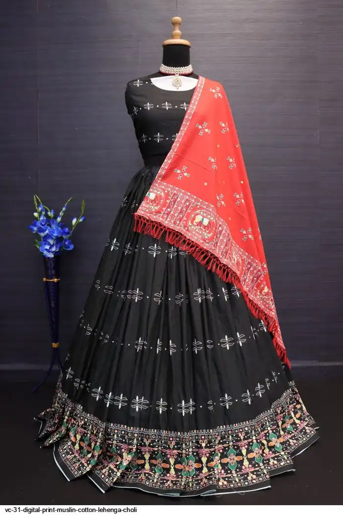 New Lounching Digital Print Muslin Cotton Lehenga Choli .