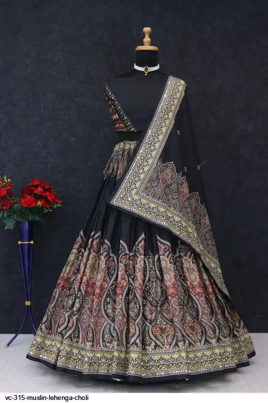 New Lounching Digital Print Muslin Lehenga Choli .