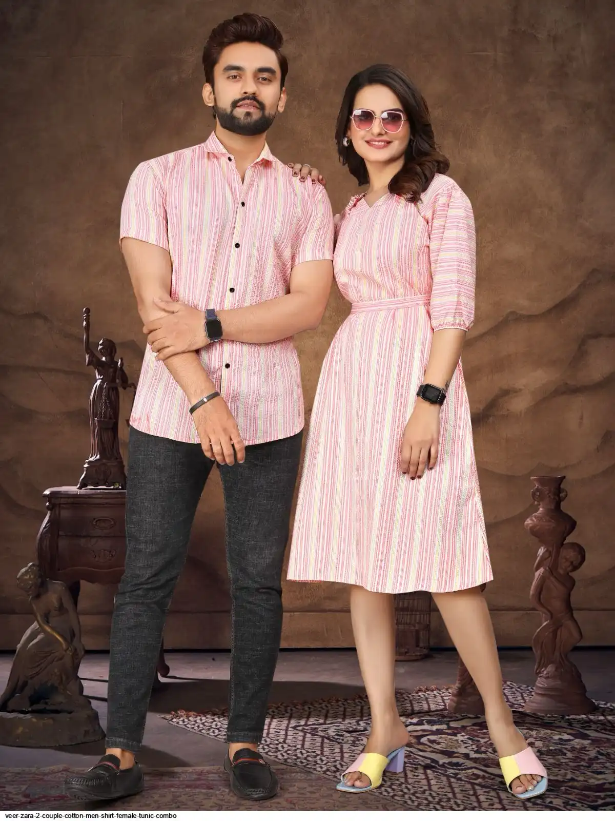 Presenting Couple Mens Shirt & Female Tunic Combo for Festival Season