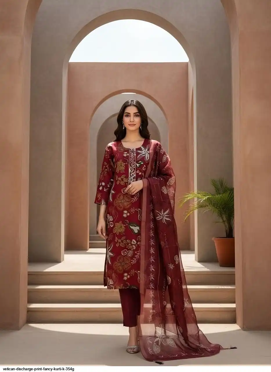 VETICAN DISCHARGE PRINT FANCY KURTI K 354G