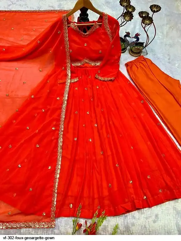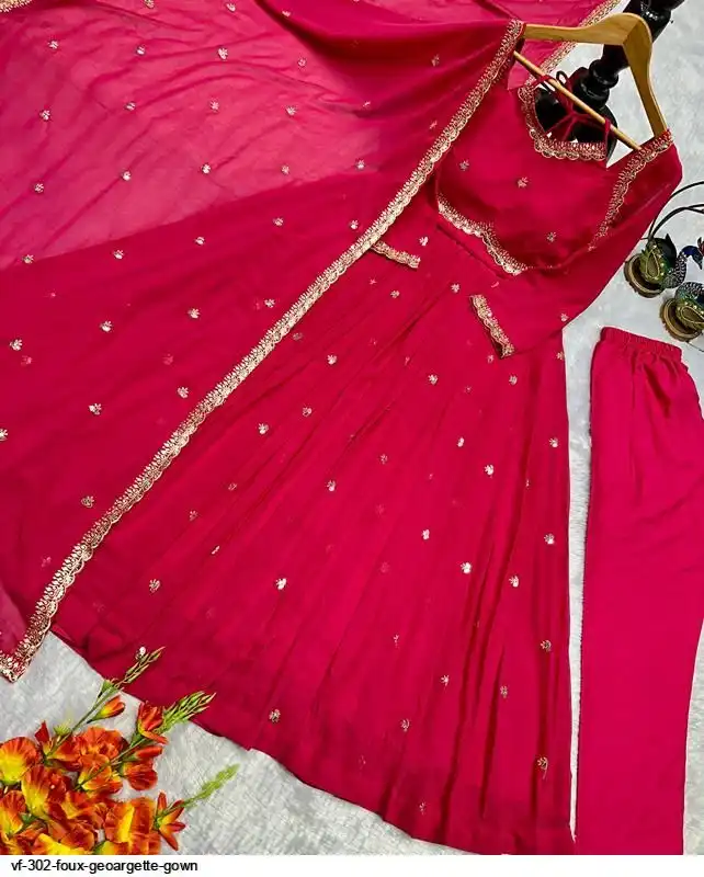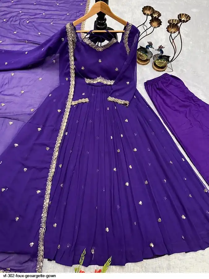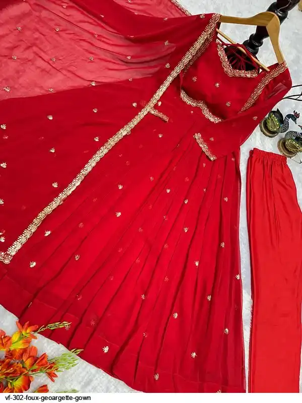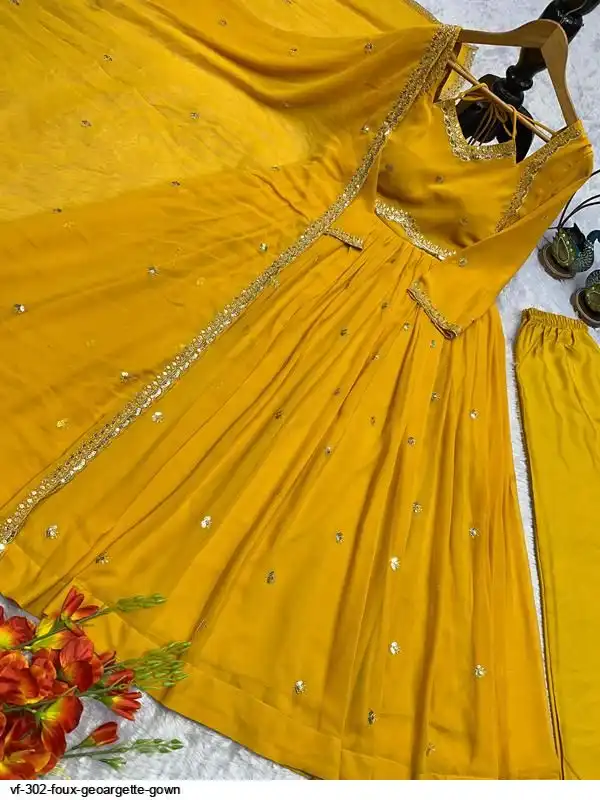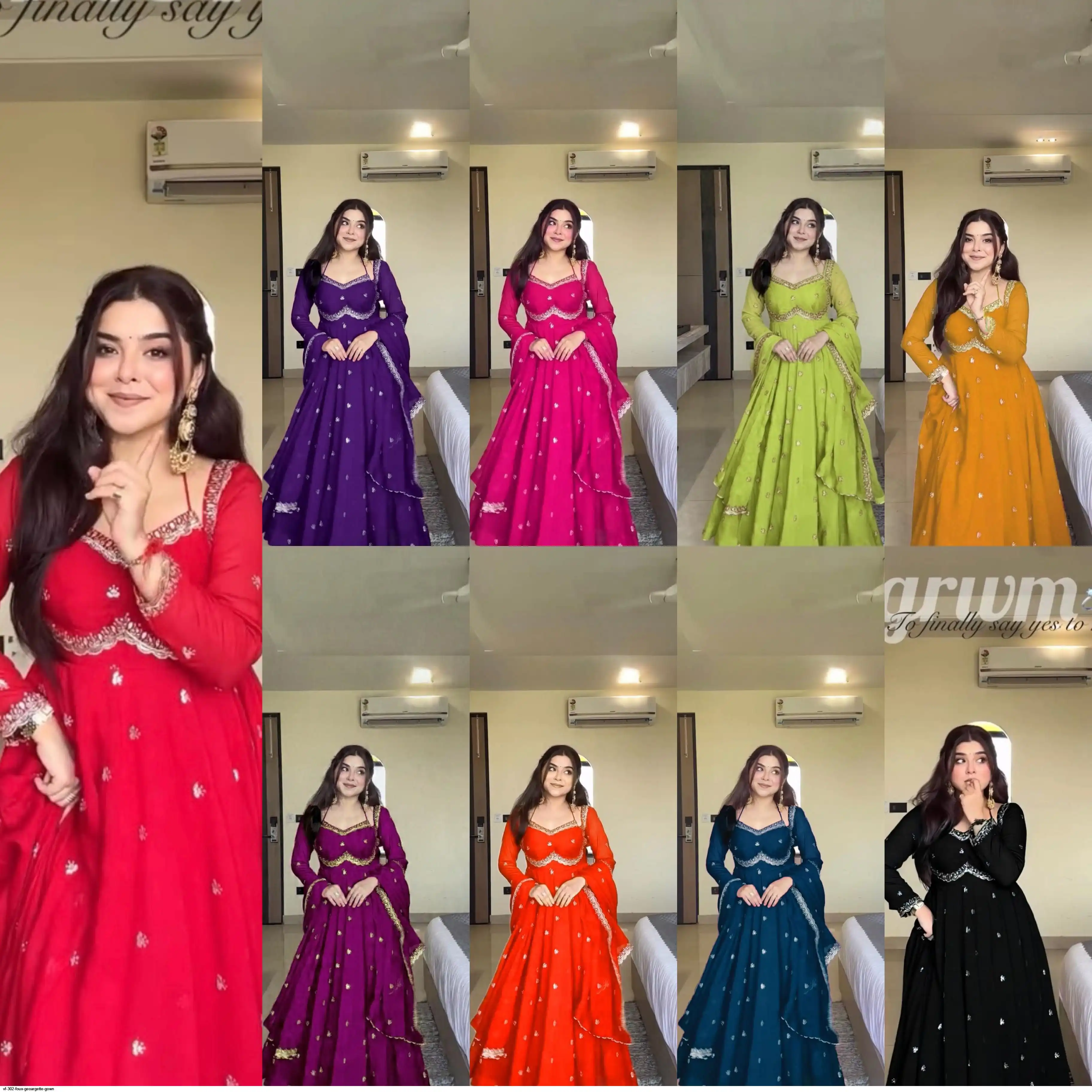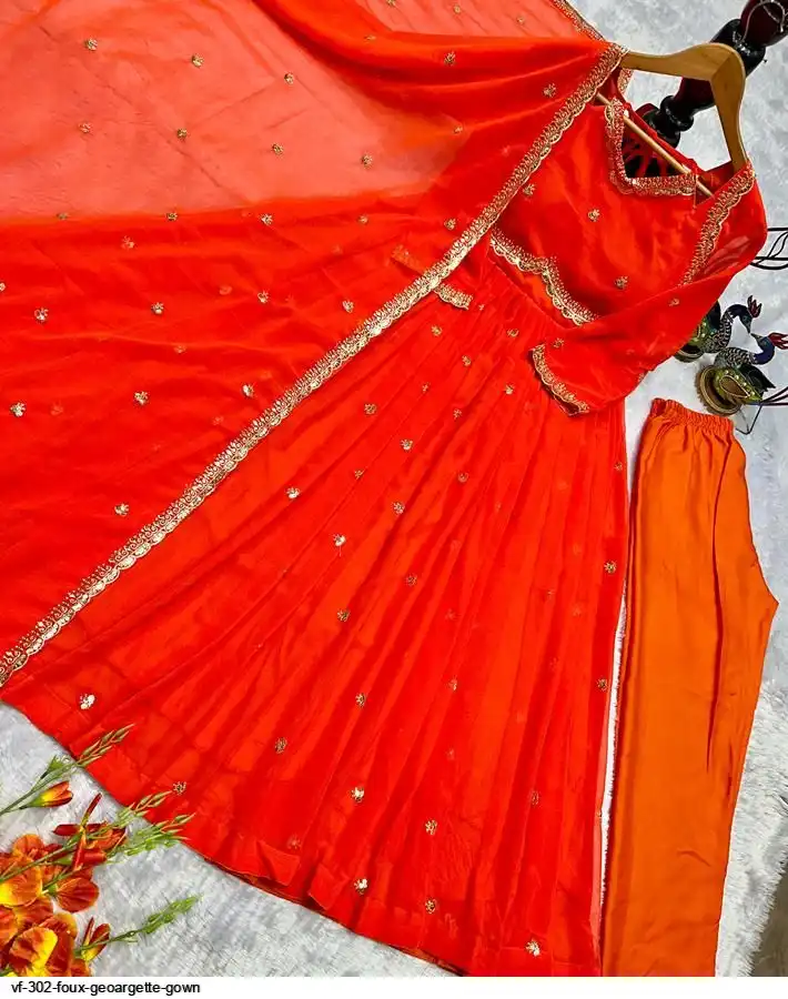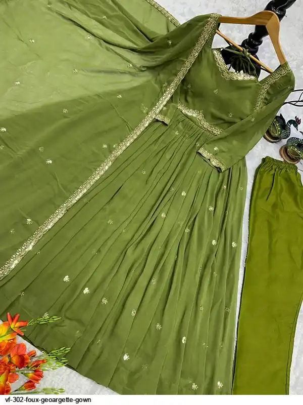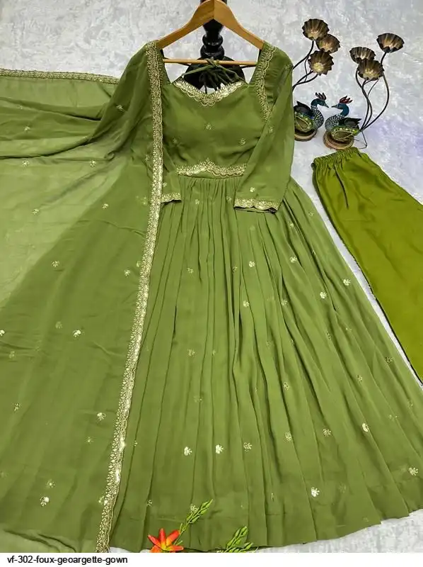 GOWN FABRIC :HeAVY FOUX GOARGATE WITH HAVY EMBROIDERY 5MM SIQVAS WORK AND FULL SLIVE
