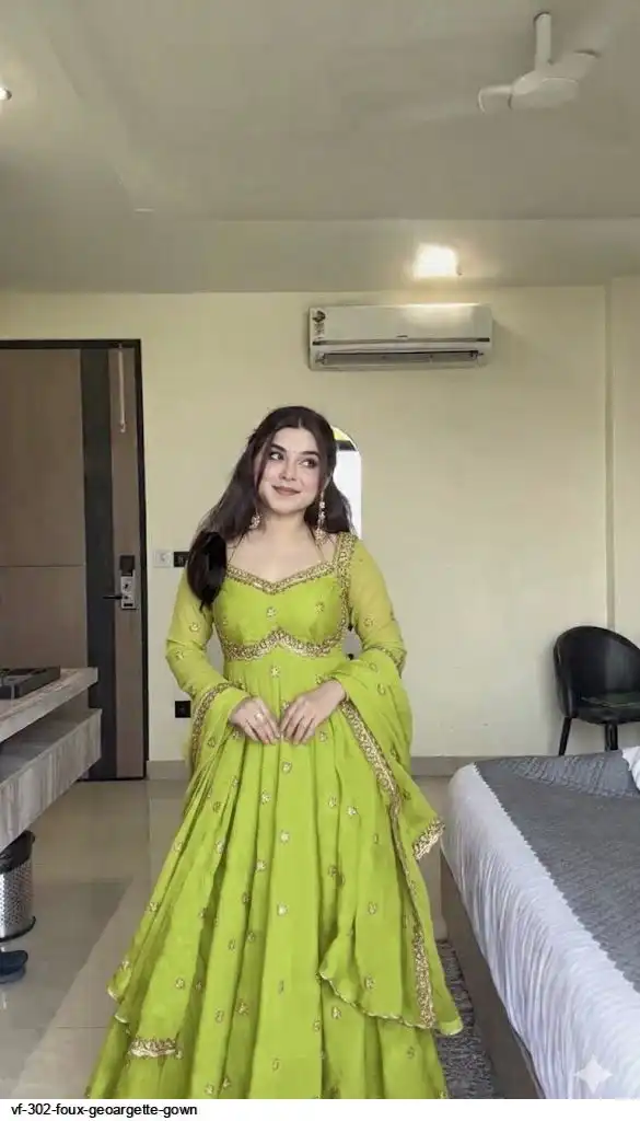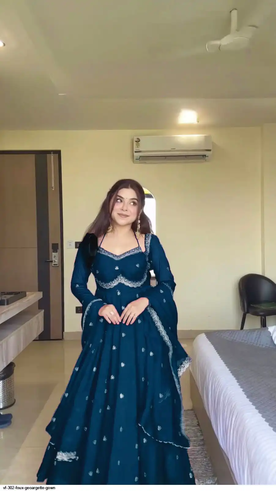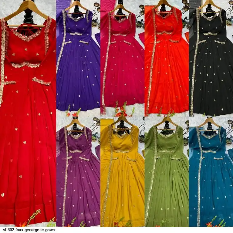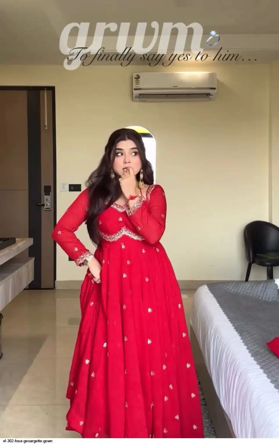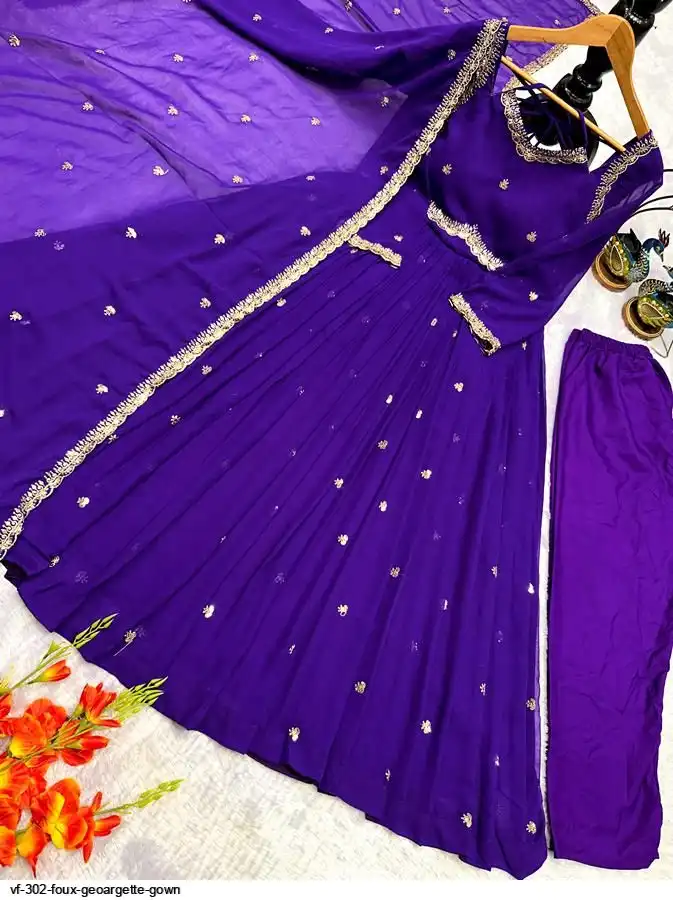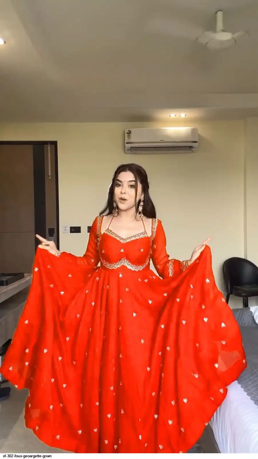 GOWN FABRIC :HeAVY FOUX GOARGATE WITH HAVY EMBROIDERY 5MM SIQVAS WORK AND FULL SLIVE