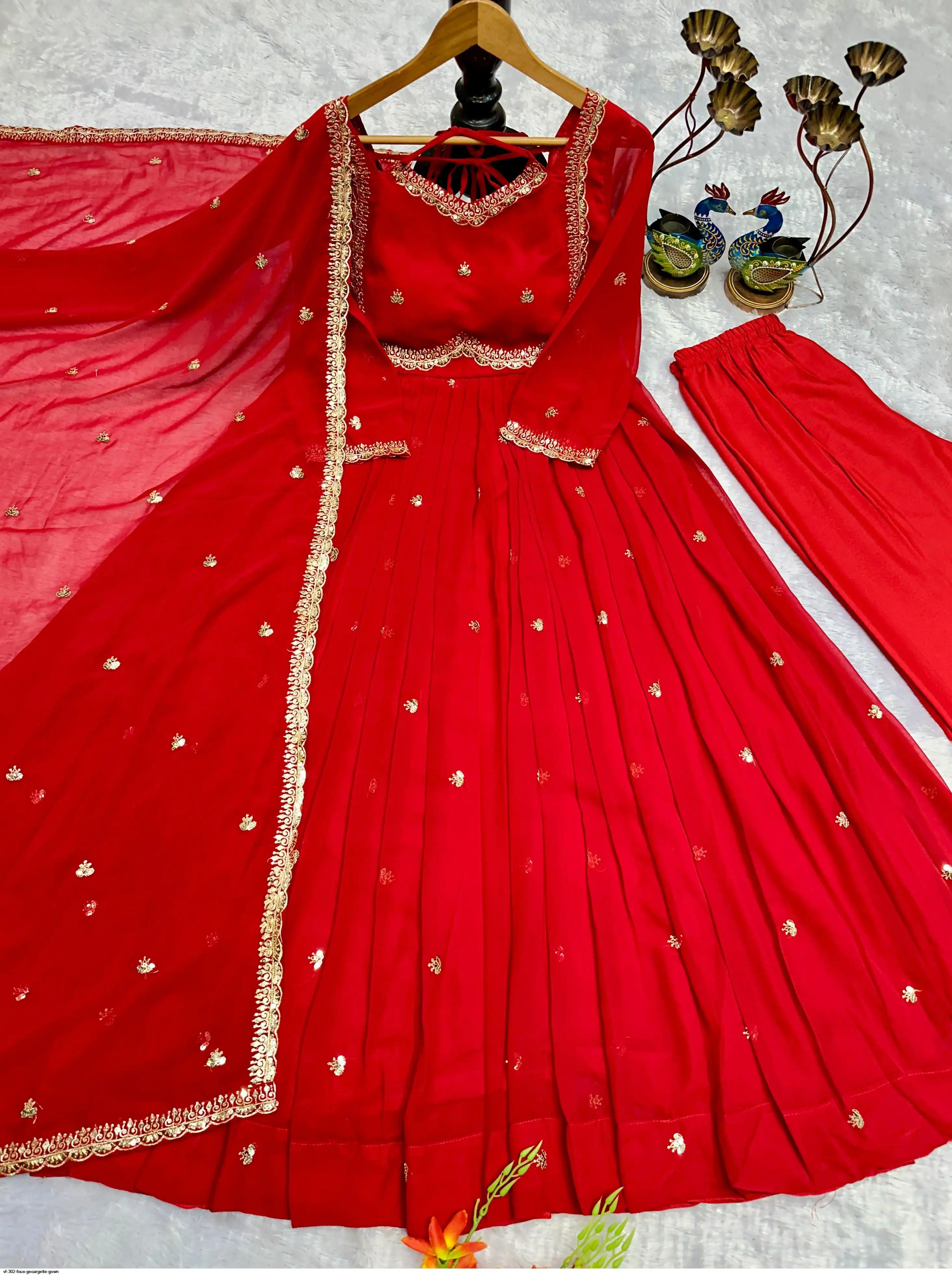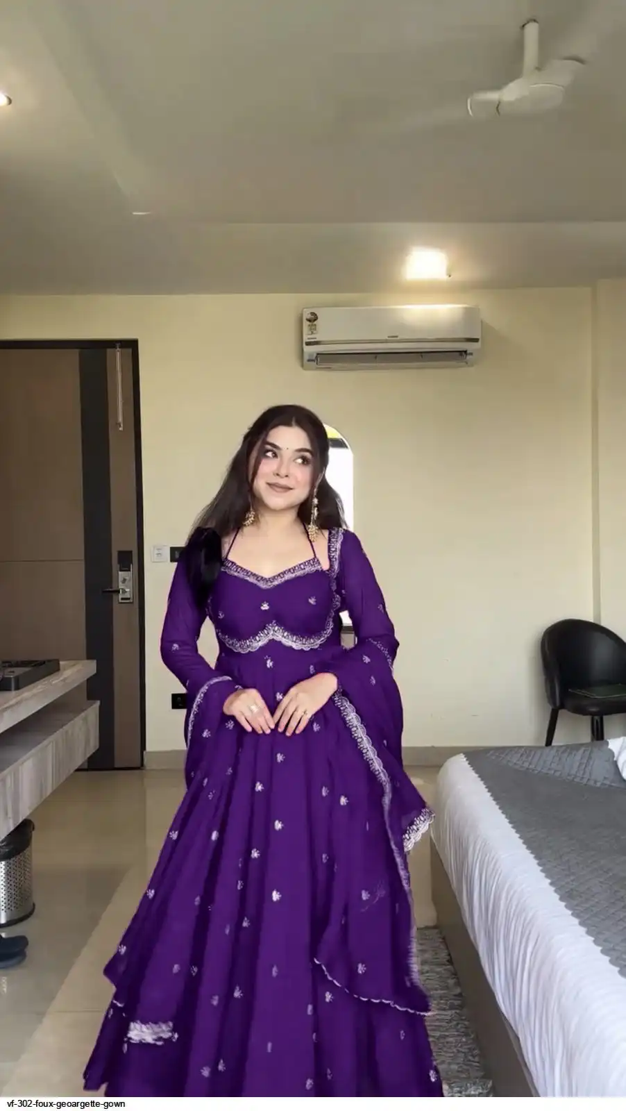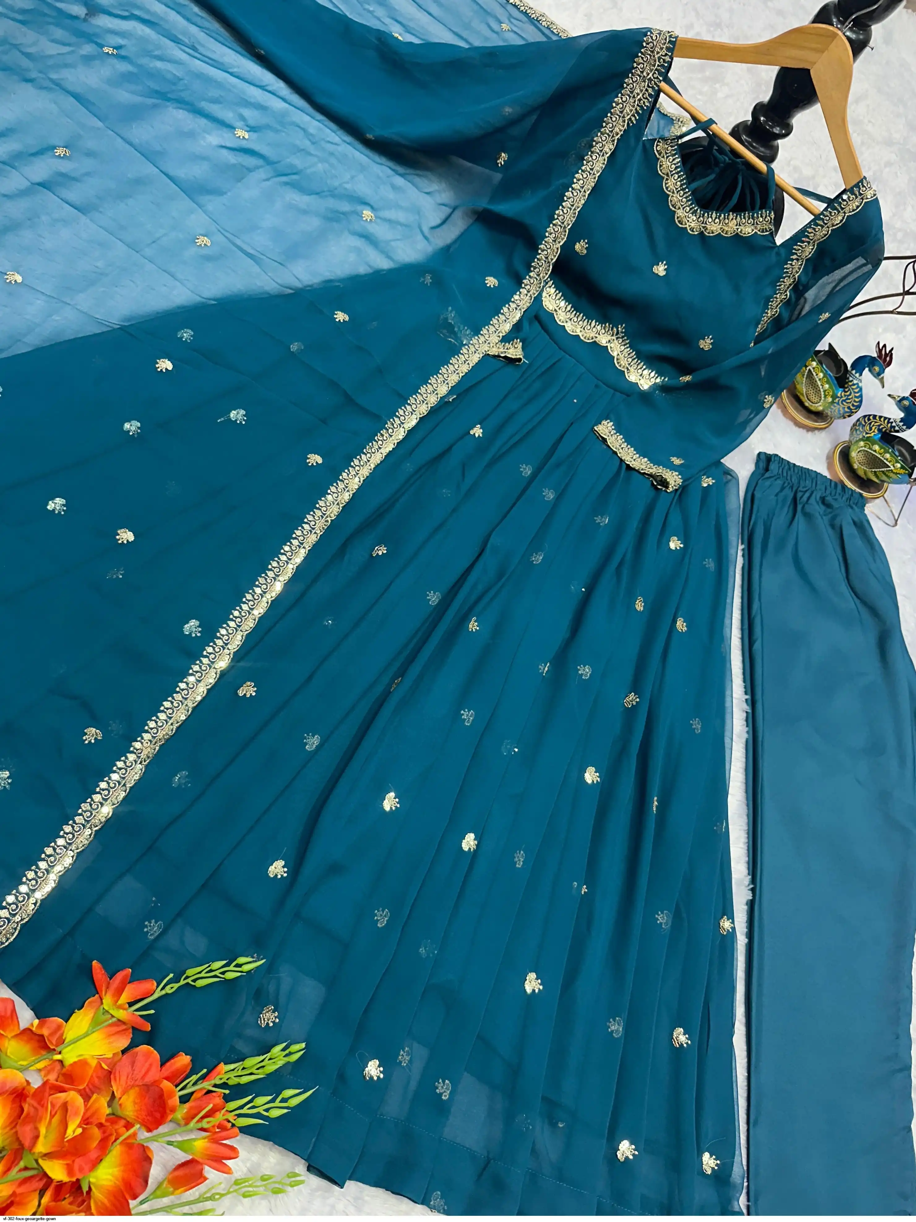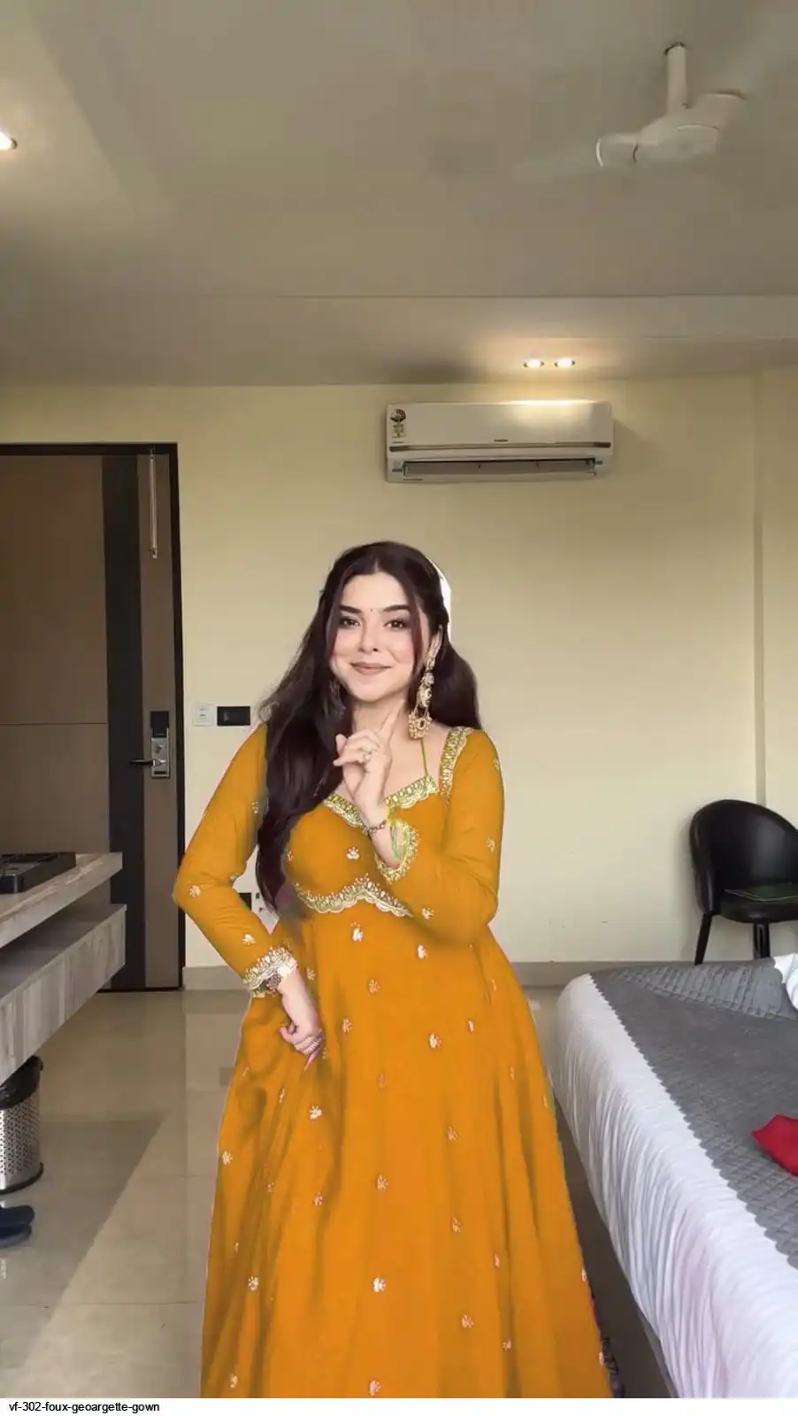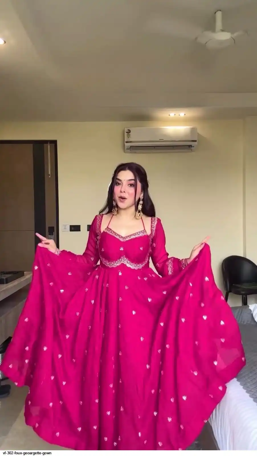 GOWN FABRIC :HeAVY FOUX GOARGATE WITH HAVY EMBROIDERY 5MM SIQVAS WORK AND FULL SLIVE