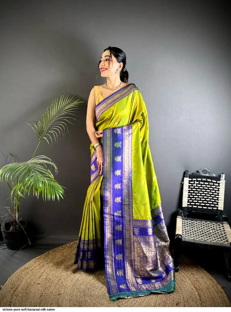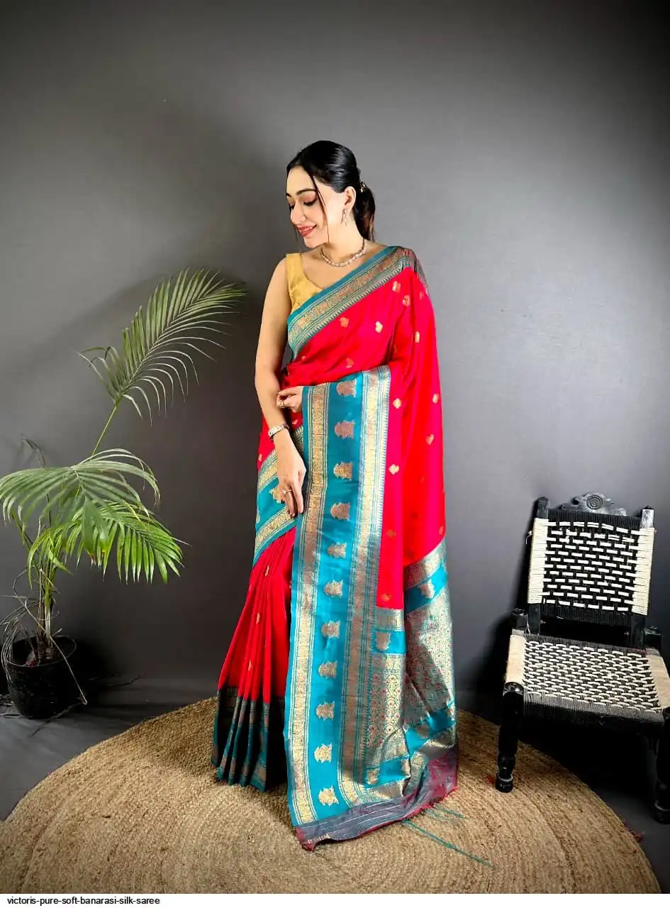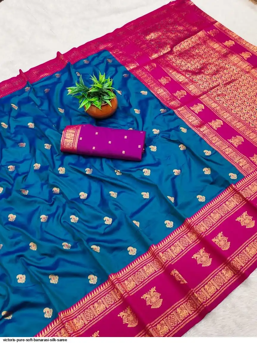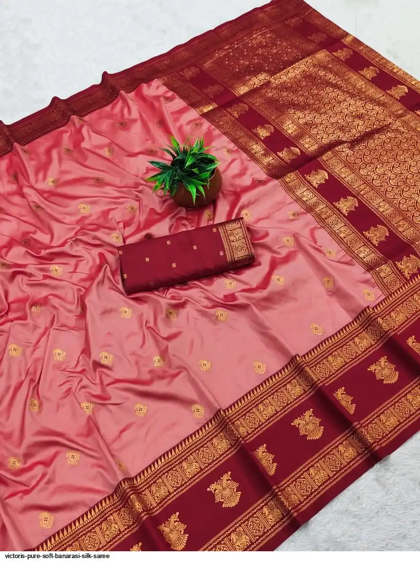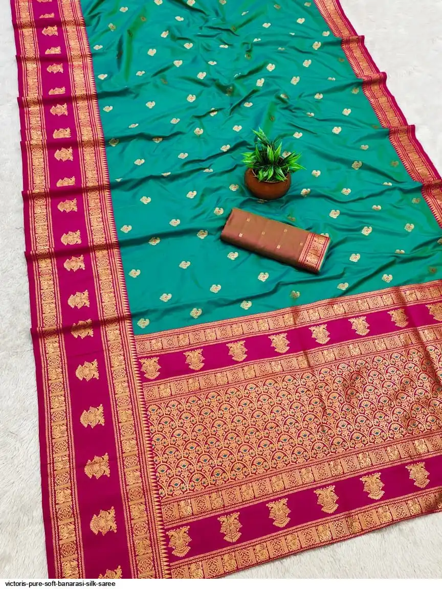 FABRIC :- Pure Soft Banarasi Silk Saree With Beautiful Weaving Border With All Over Beautiful Design With Gold Zari And Silver Zari Weaving Design And Rich Weaved Pallu And Blouse
