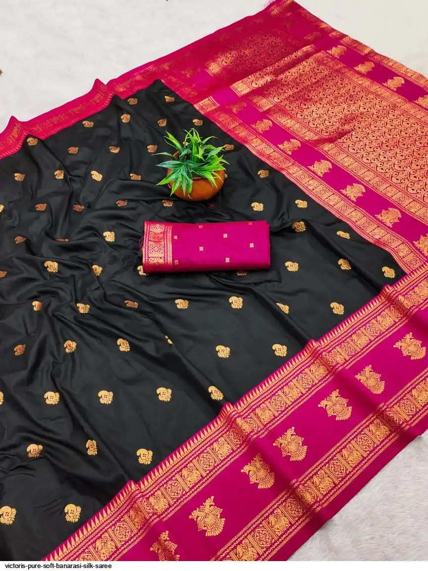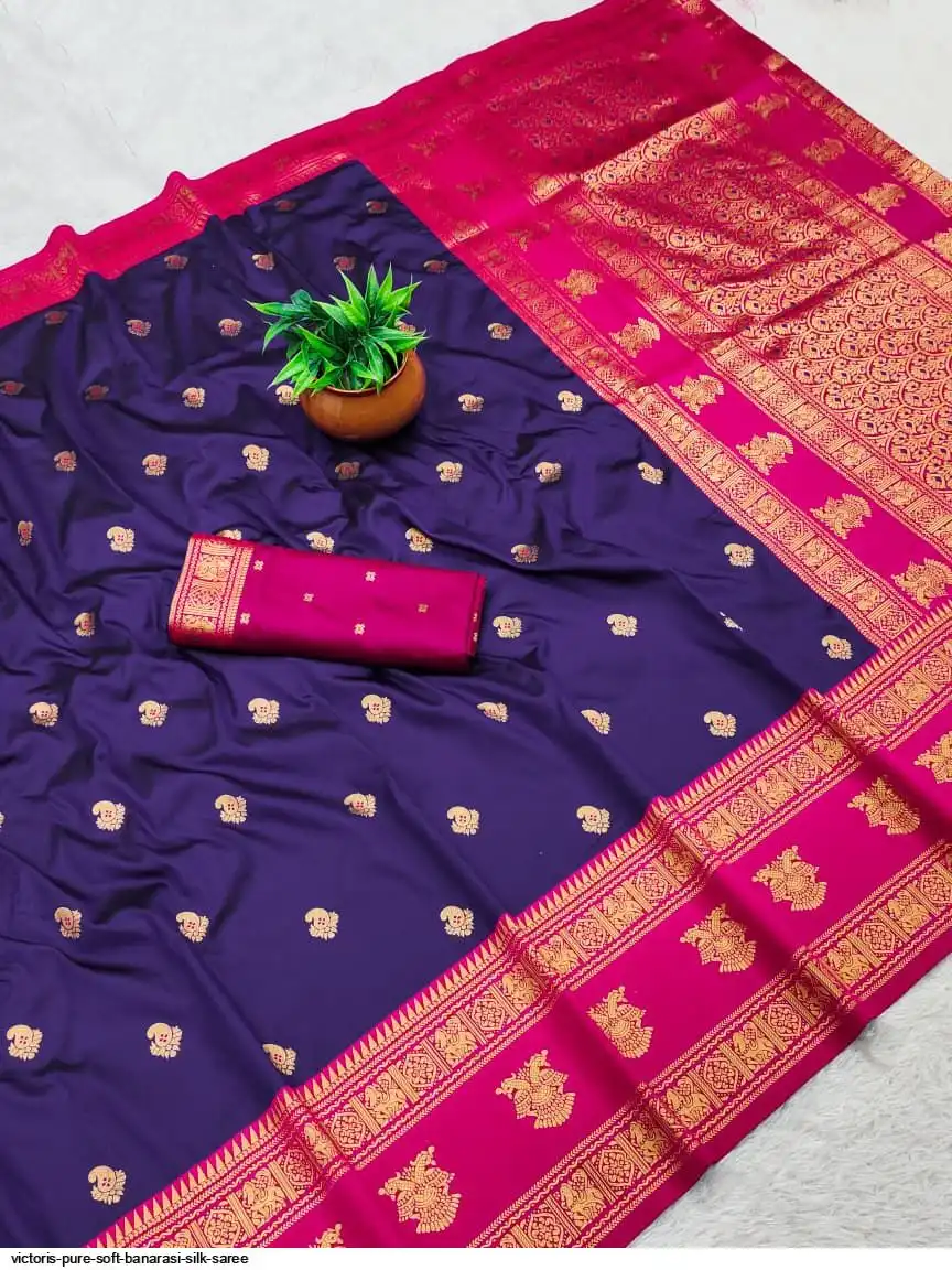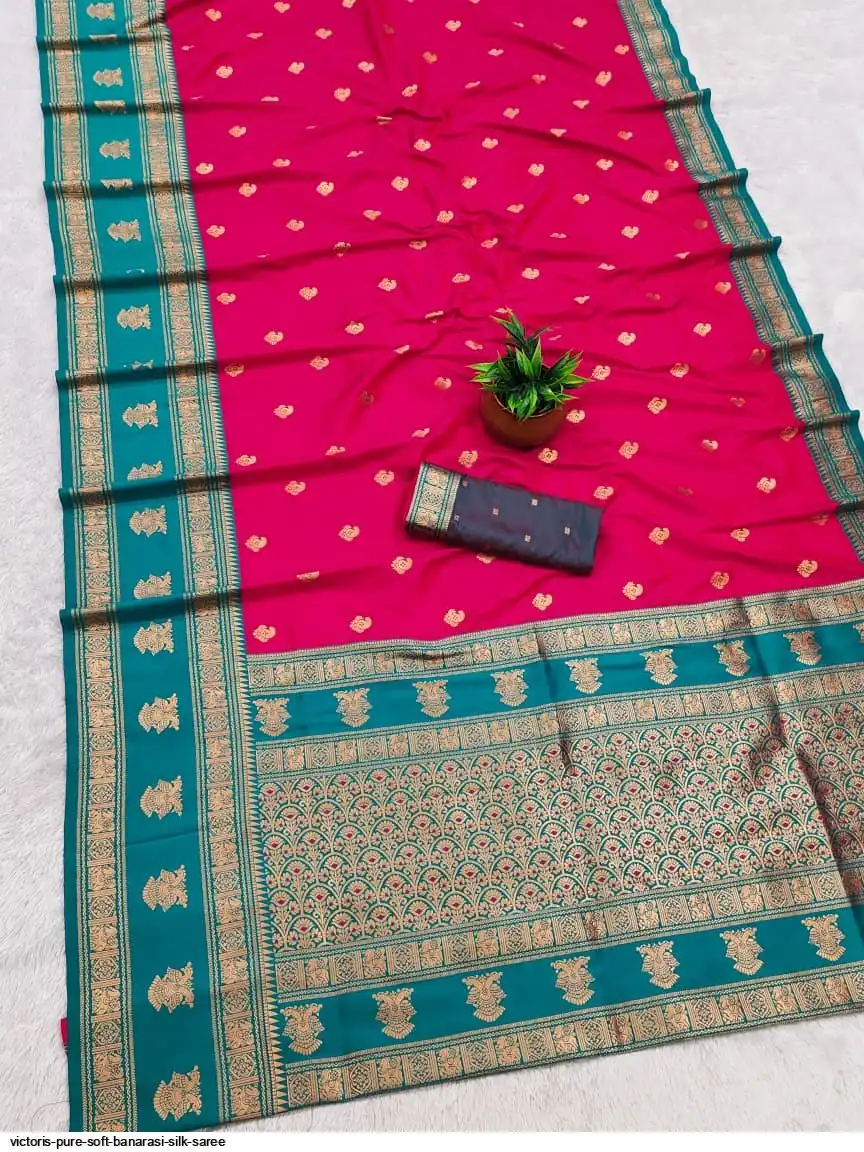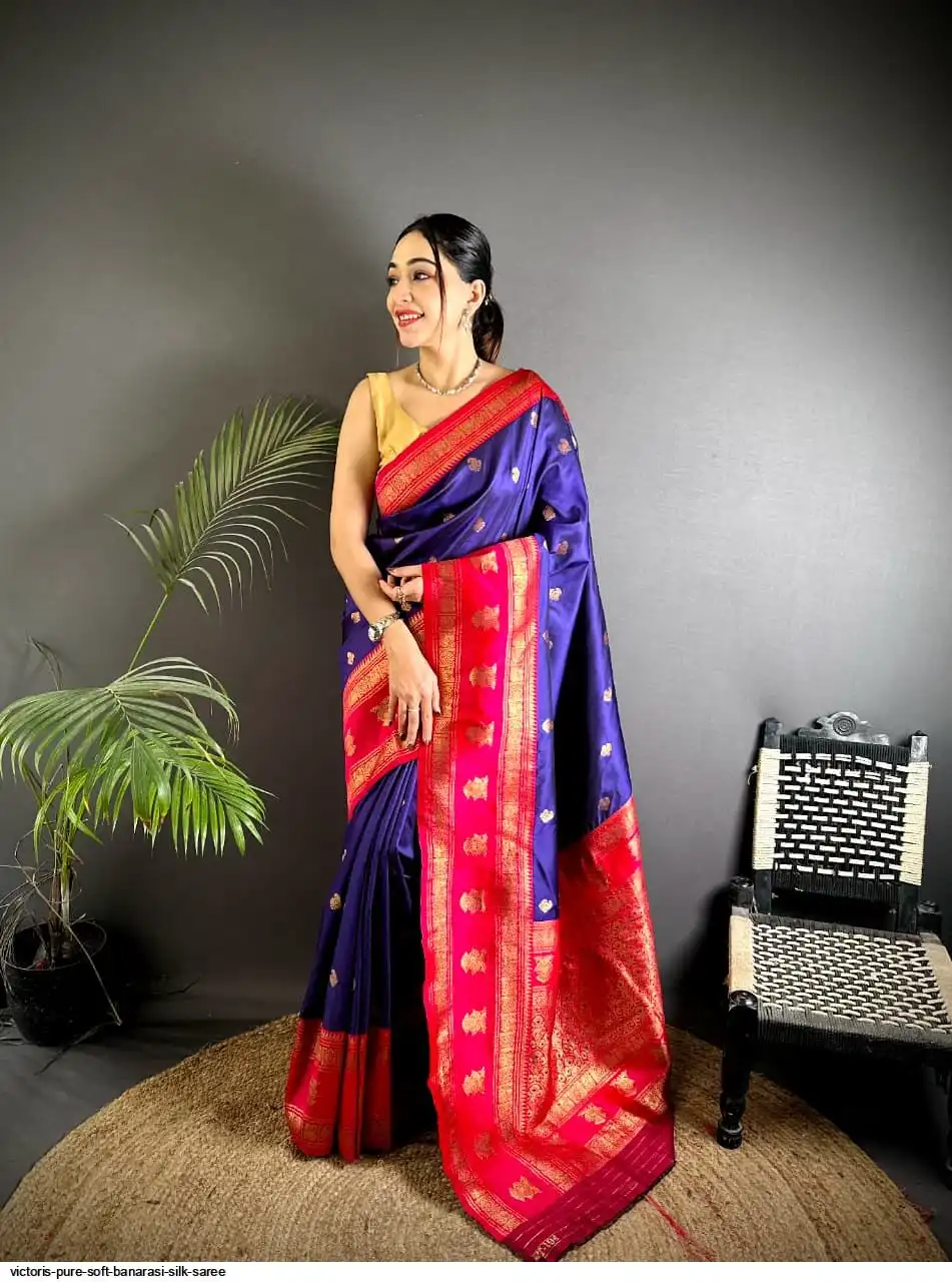 FABRIC :- Pure Soft Banarasi Silk Saree With Beautiful Weaving Border With All Over Beautiful Design With Gold Zari And Silver Zari Weaving Design And Rich Weaved Pallu And Blouse