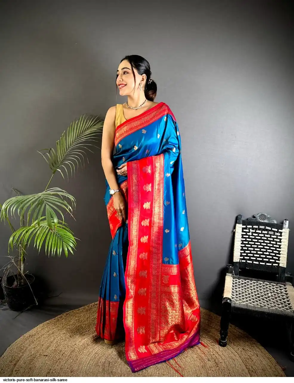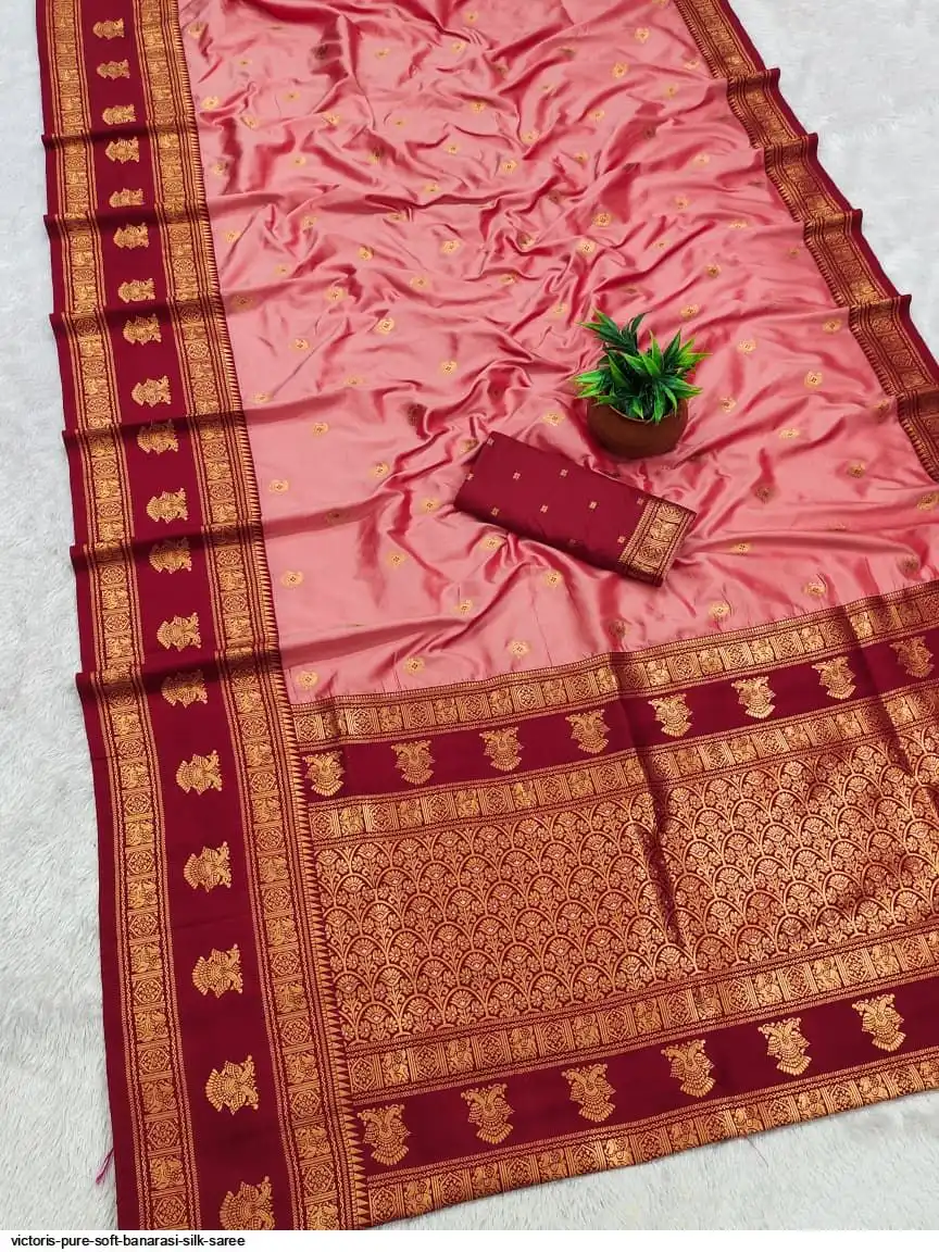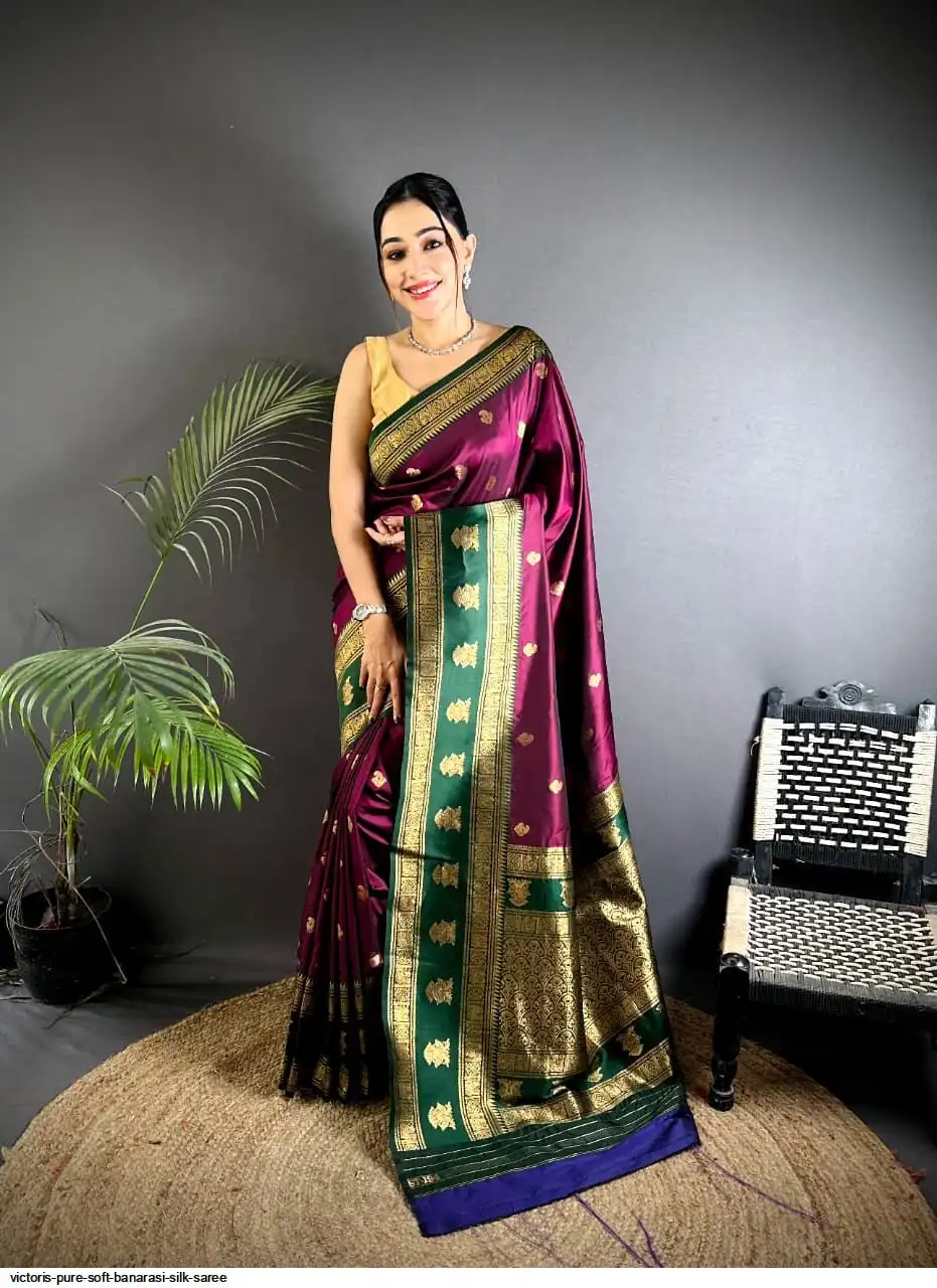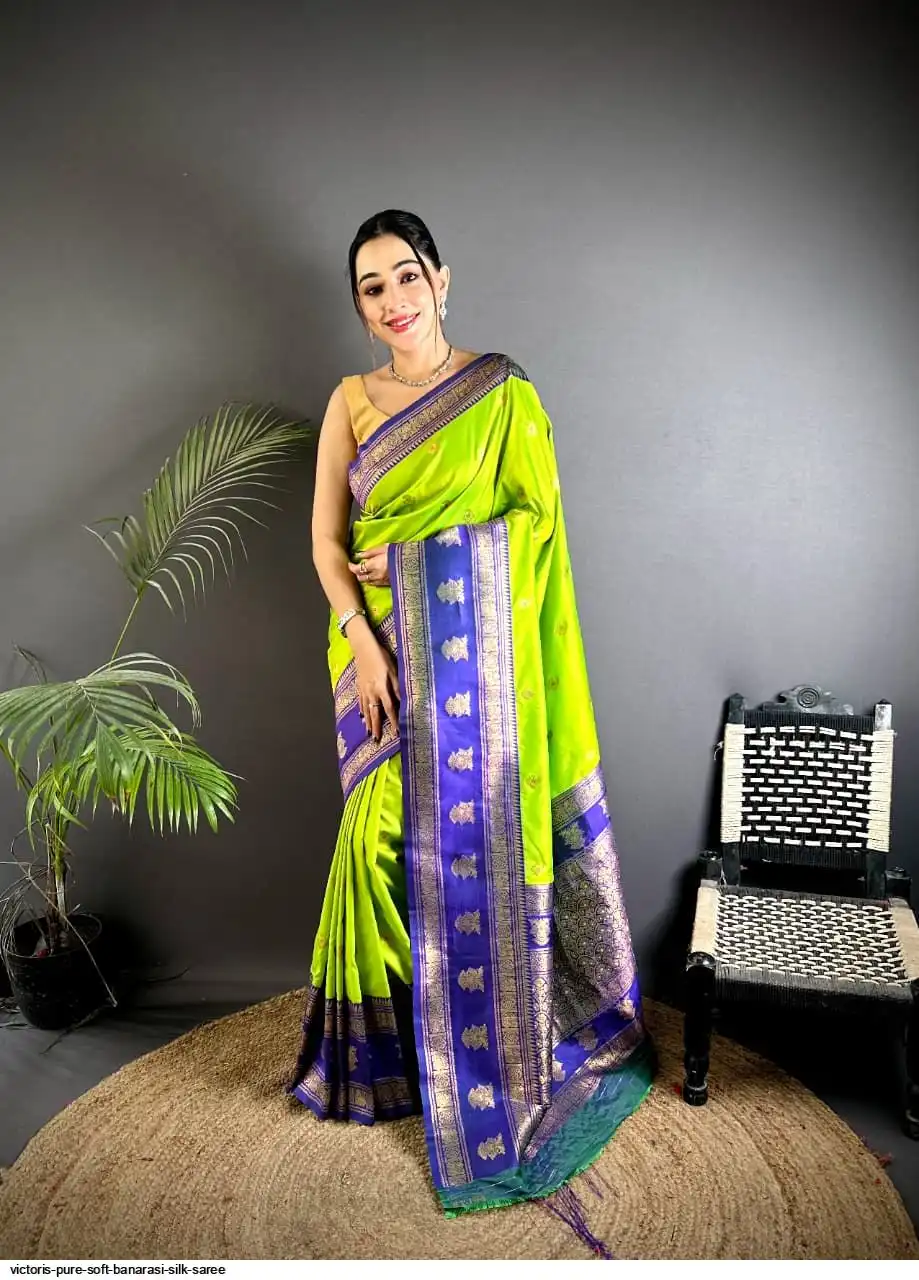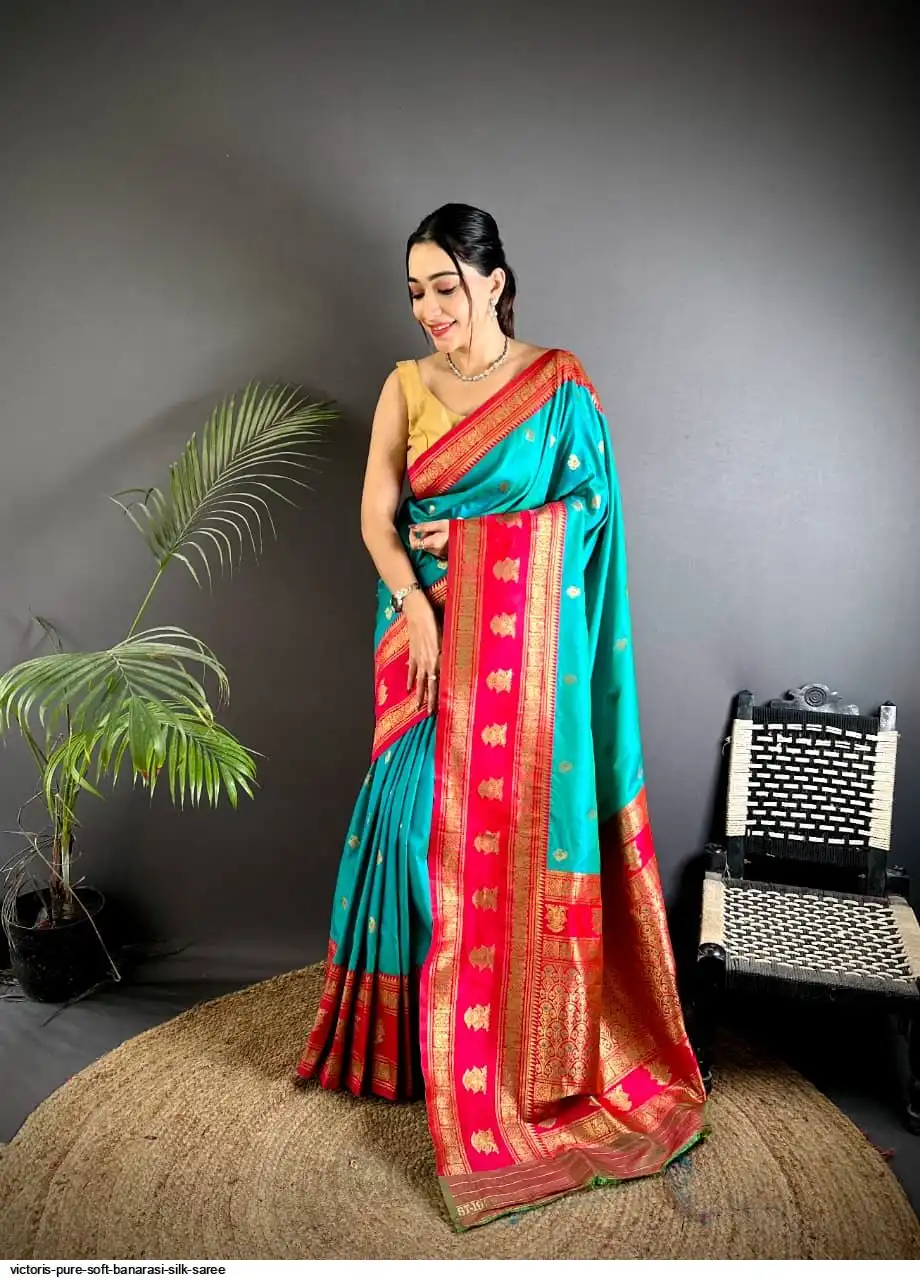 FABRIC :- Pure Soft Banarasi Silk Saree With Beautiful Weaving Border With All Over Beautiful Design With Gold Zari And Silver Zari Weaving Design And Rich Weaved Pallu And Blouse