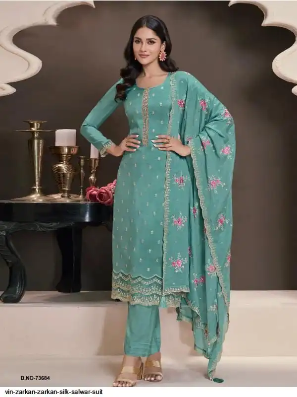 *TOP* :- Heavy Moonga Silk With Sequence Embroidery Stich Work