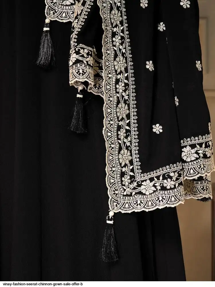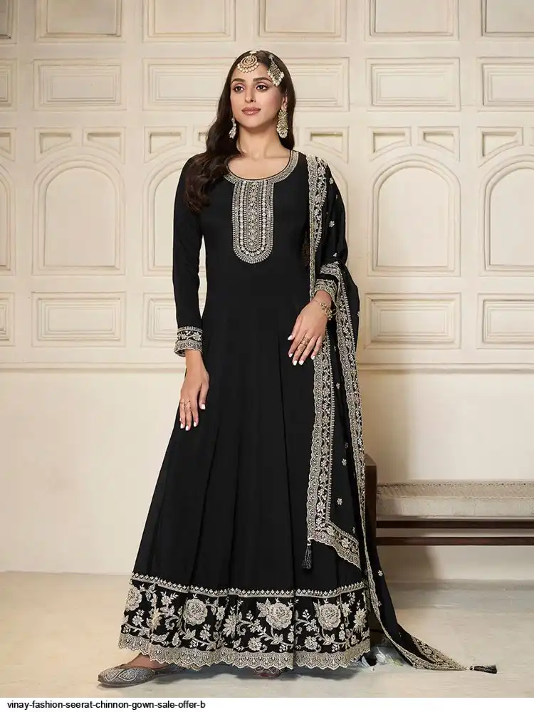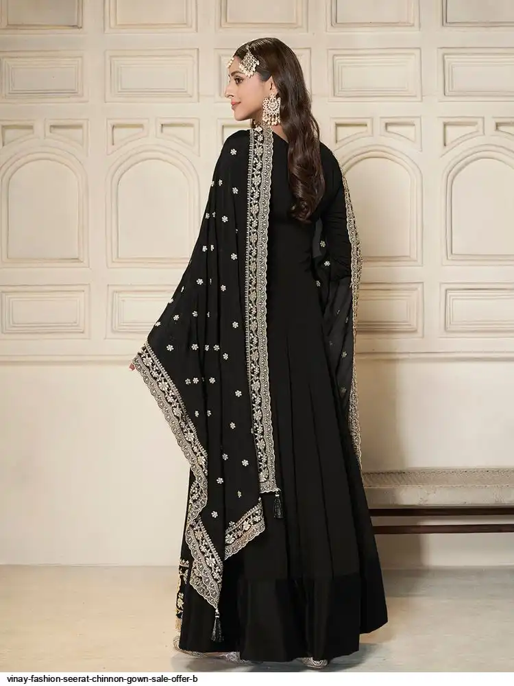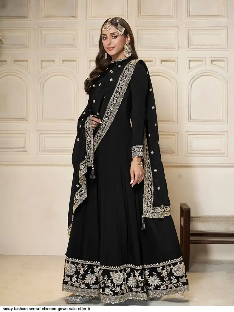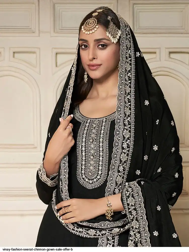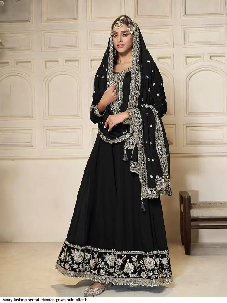 Chinon Top with White Embroidery & Sequins Anarkali Suit Set