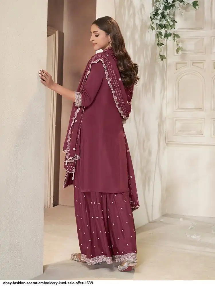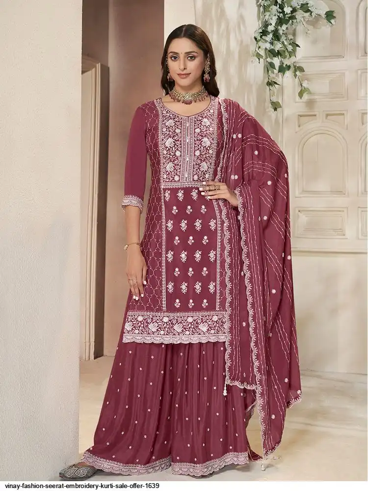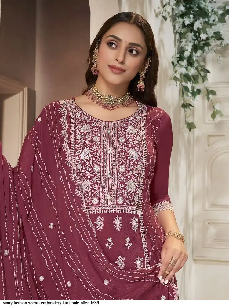 Bottom Fabric - Chinon Sequins Butti Work with Thread Embroidery