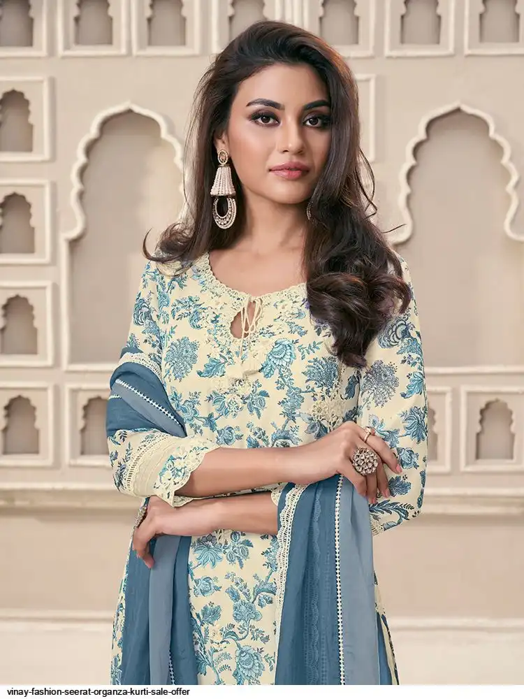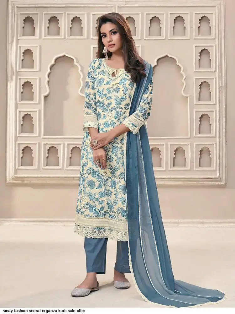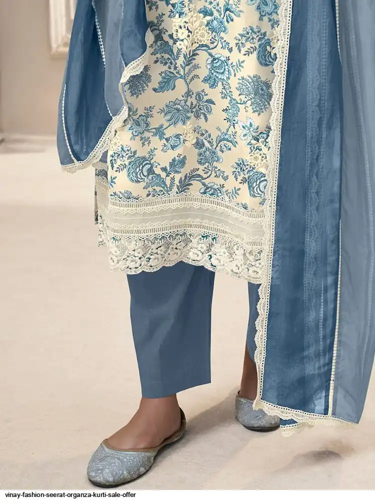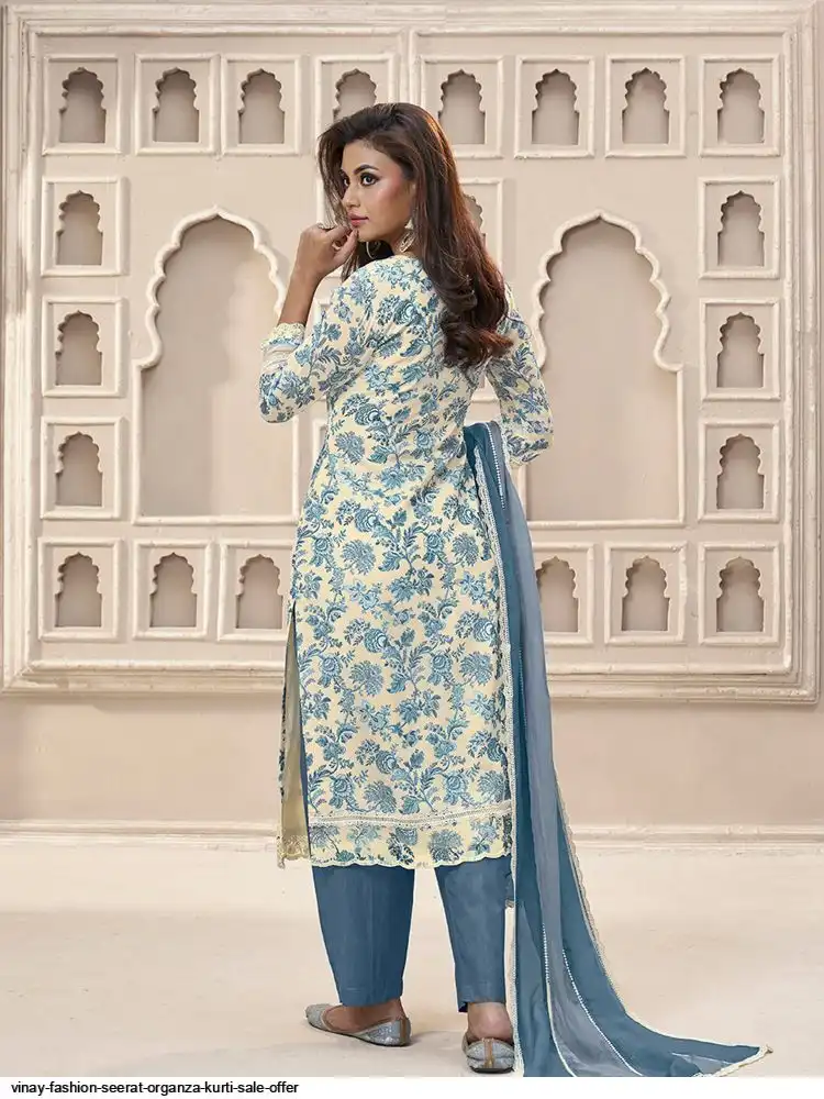 Organza Fabric with Floral Printed and Thread Embroidery work Kurta Suit