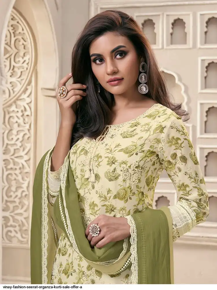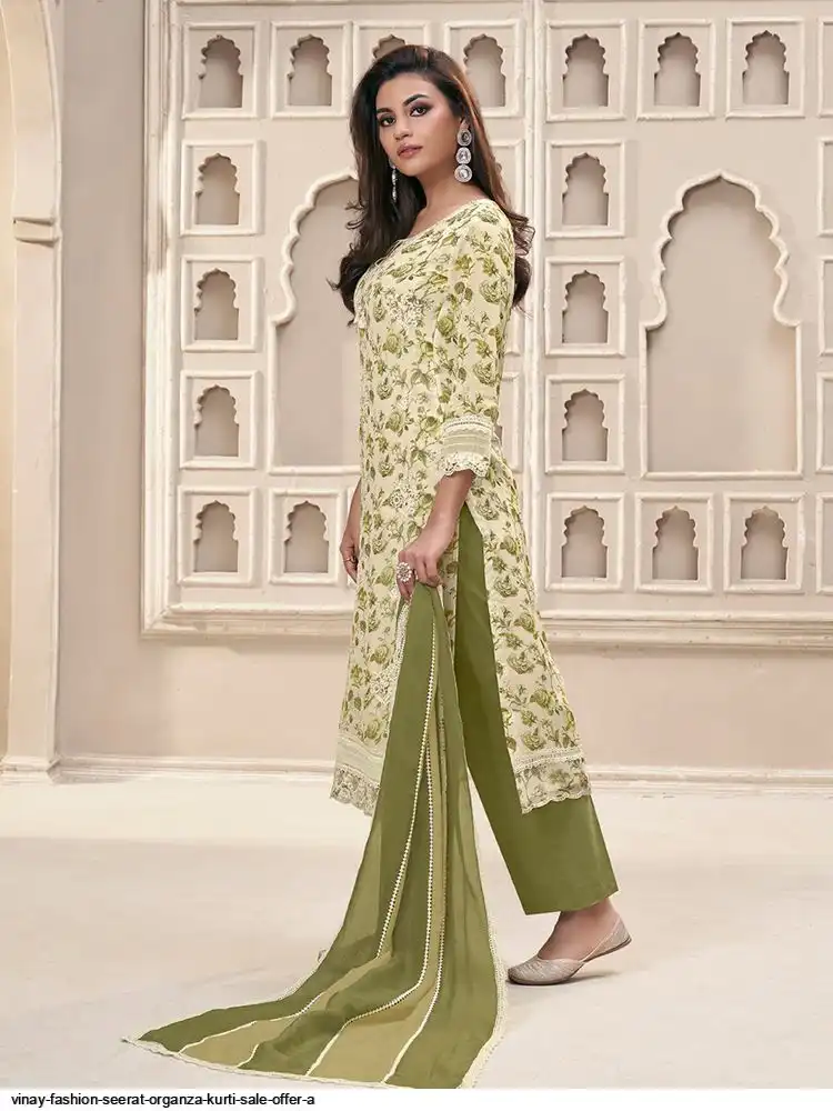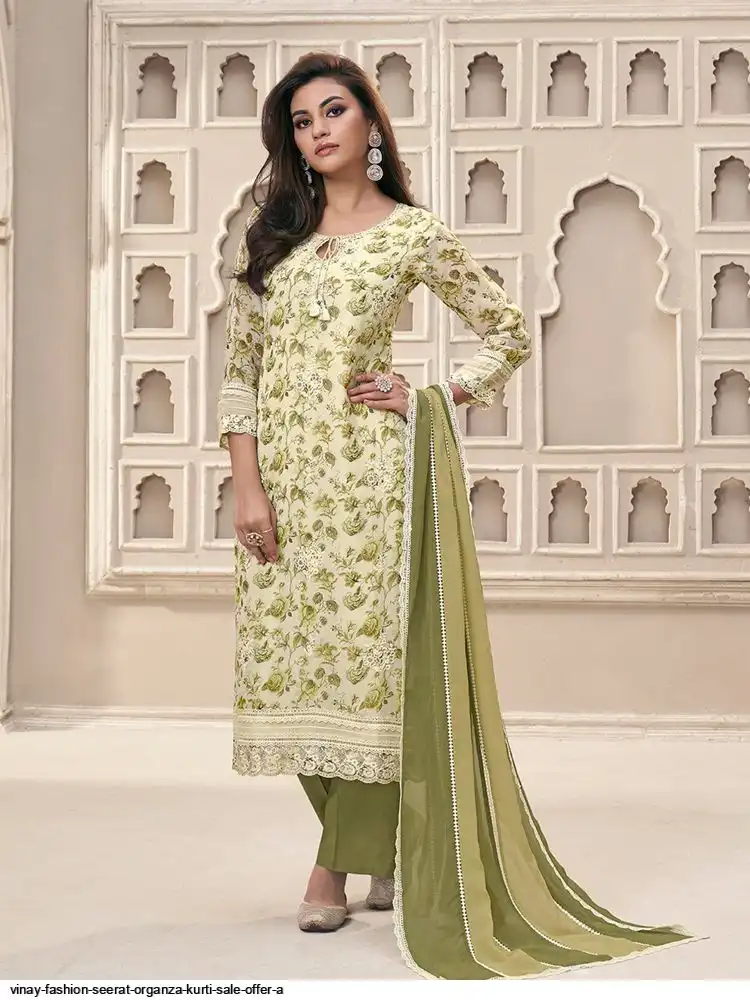 Organza Fabric with Floral Printed and Thread Embroidery work Kurta Suit set