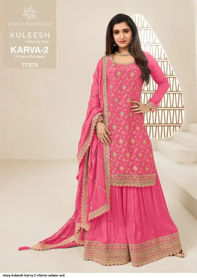 EMBROIDERED VISCOSE CHINON JACQUARD TOP WITH EMBROIDERED CHINON SHARARA BOTTOM & DUPATTA
