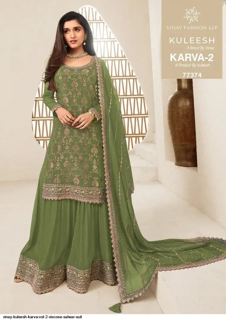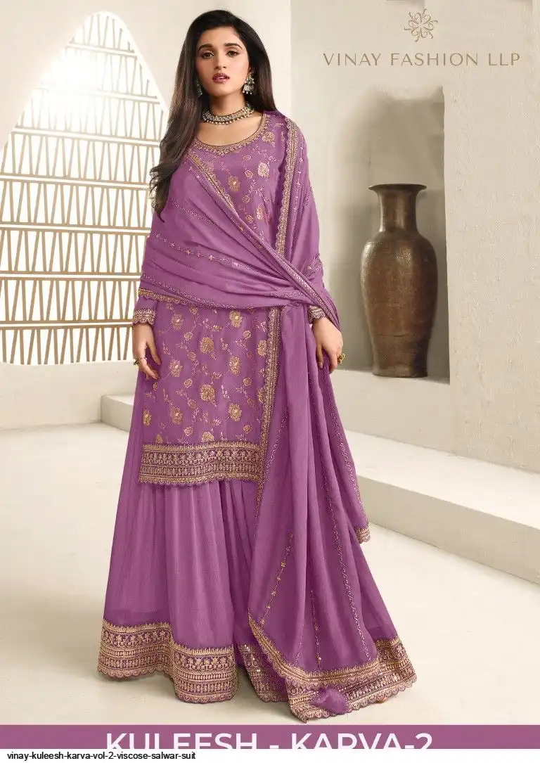 EMBROIDERED VISCOSE CHINON JACQUARD TOP WITH EMBROIDERED CHINON SHARARA BOTTOM & DUPATTA