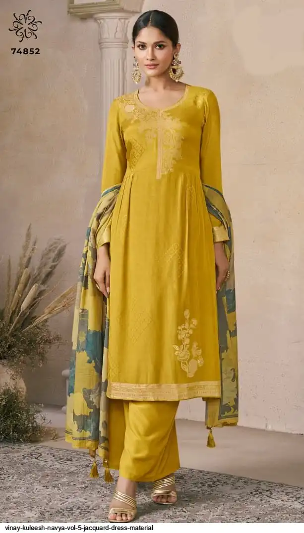 - Top/Kurta: Self-Weaved Viscose Machlin Jacquard – rich texture