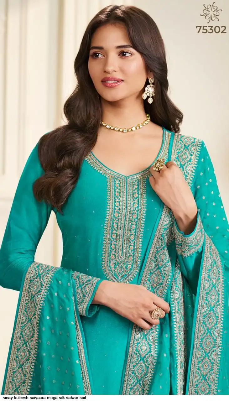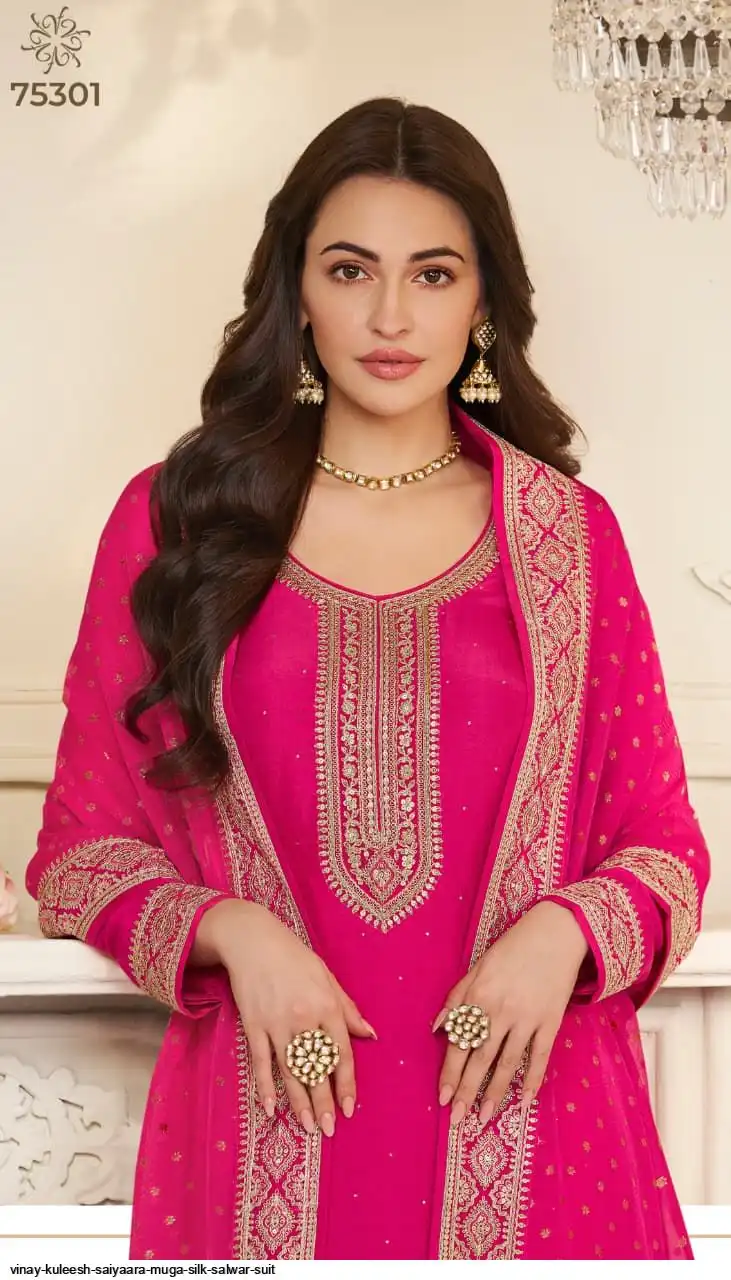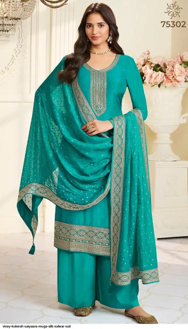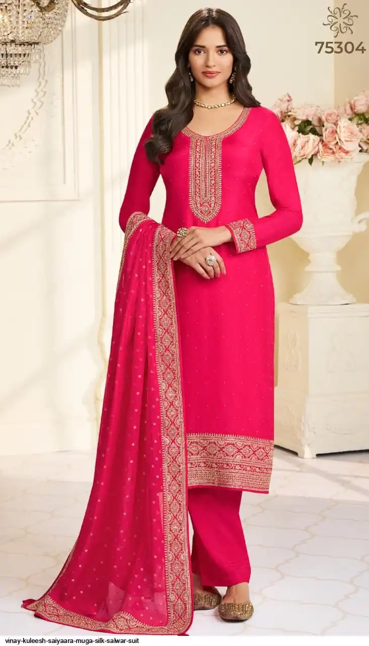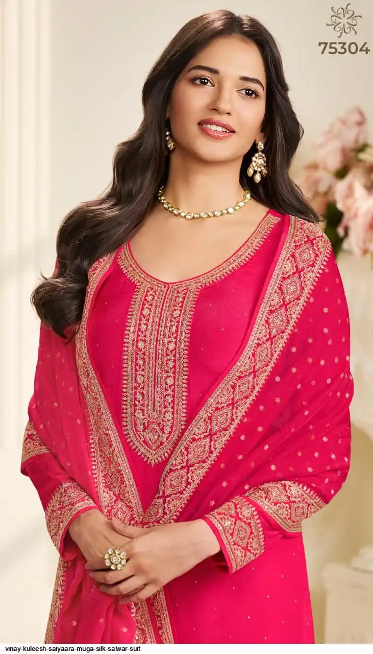 * Dupatta: Vis Chiniya Silk Self-Weave Dupatta with Latkans & Four-Sided Border Lace