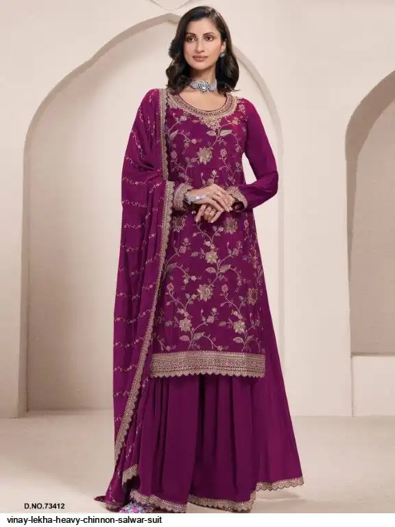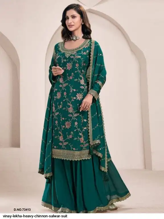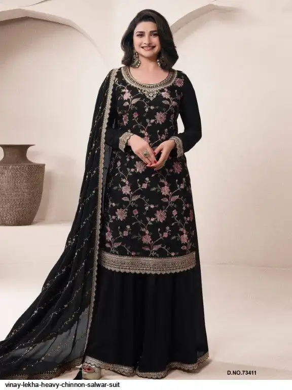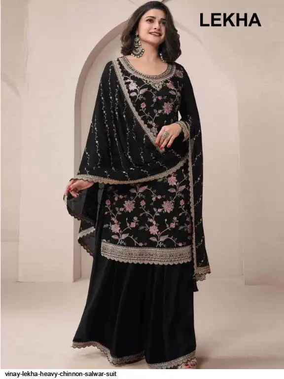 TOP :- Heavy Chinnon With Sequence Embroidery Stich Work. & Hand Work