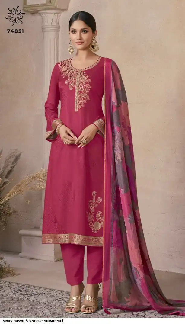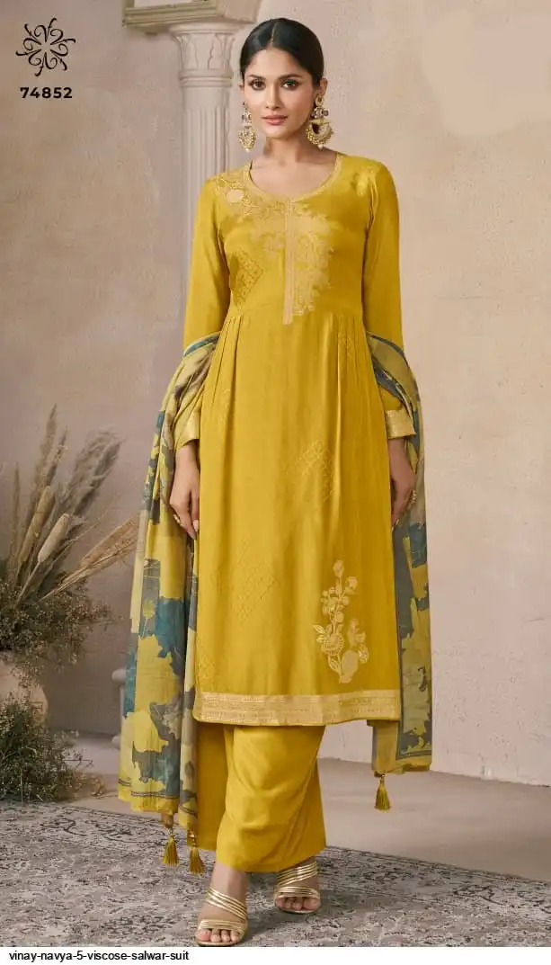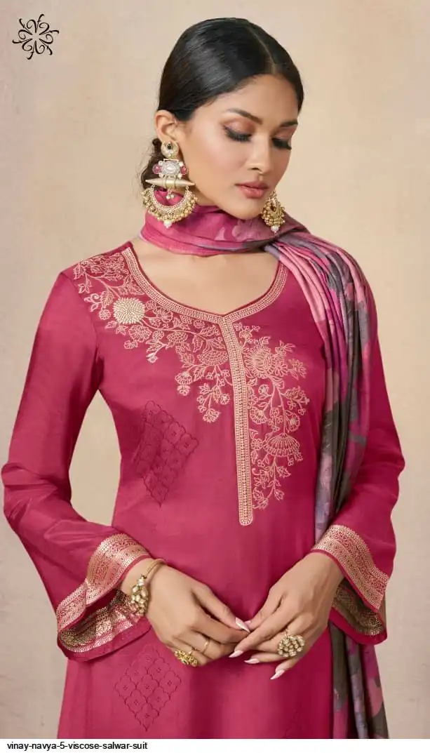 - Top/Kurta: Self-Weaved Viscose Machlin Jacquard – rich texture