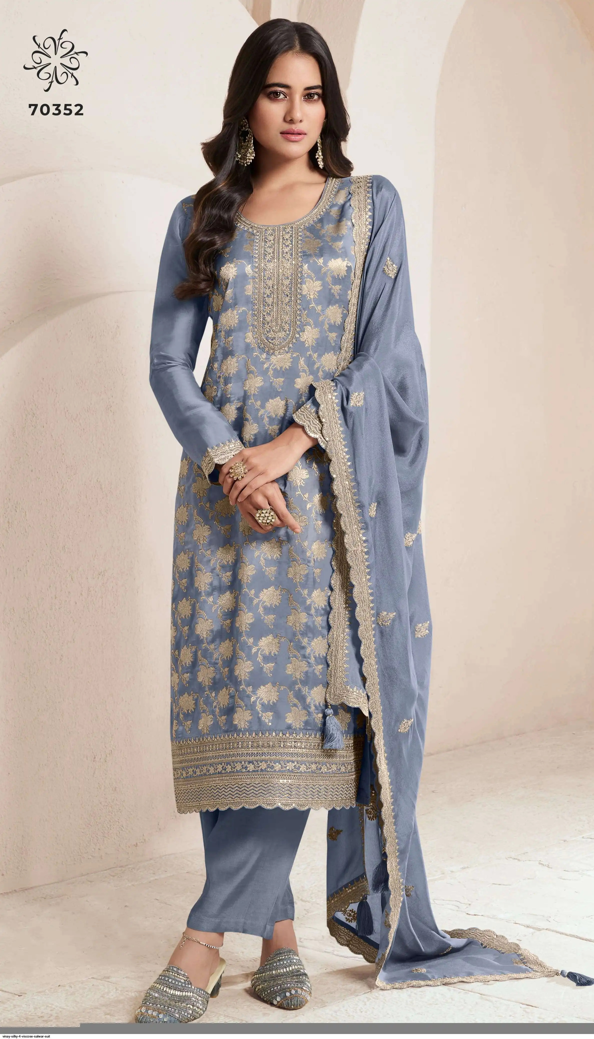 *TOP* :- Pure Viscouse Jecard Silk With Codding Siquance Embro. Work