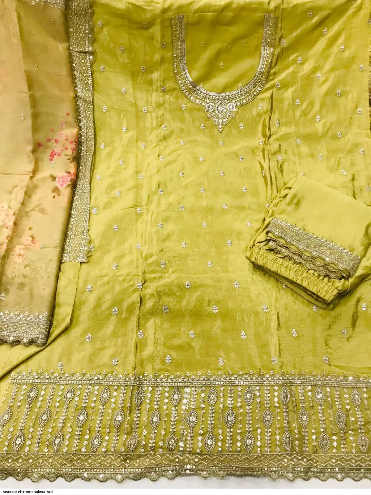 Top Fabric:-Viscose Chinon & Embroidery Dhaga,Zari,Sequence Work