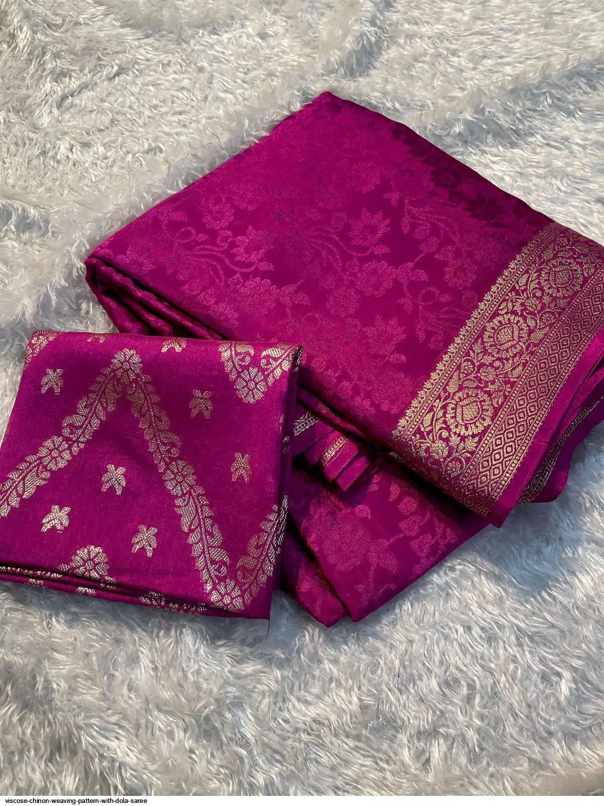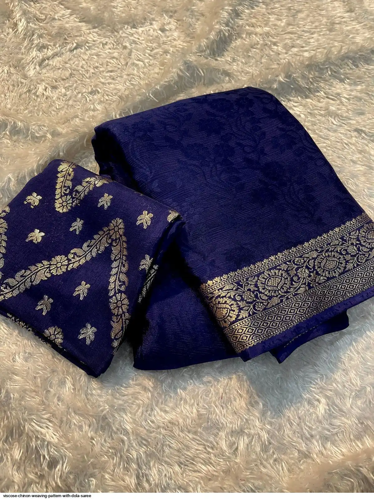 Viscose Chinon Weaving Pattern Saree With Dola Banarasi Silk Blouse
