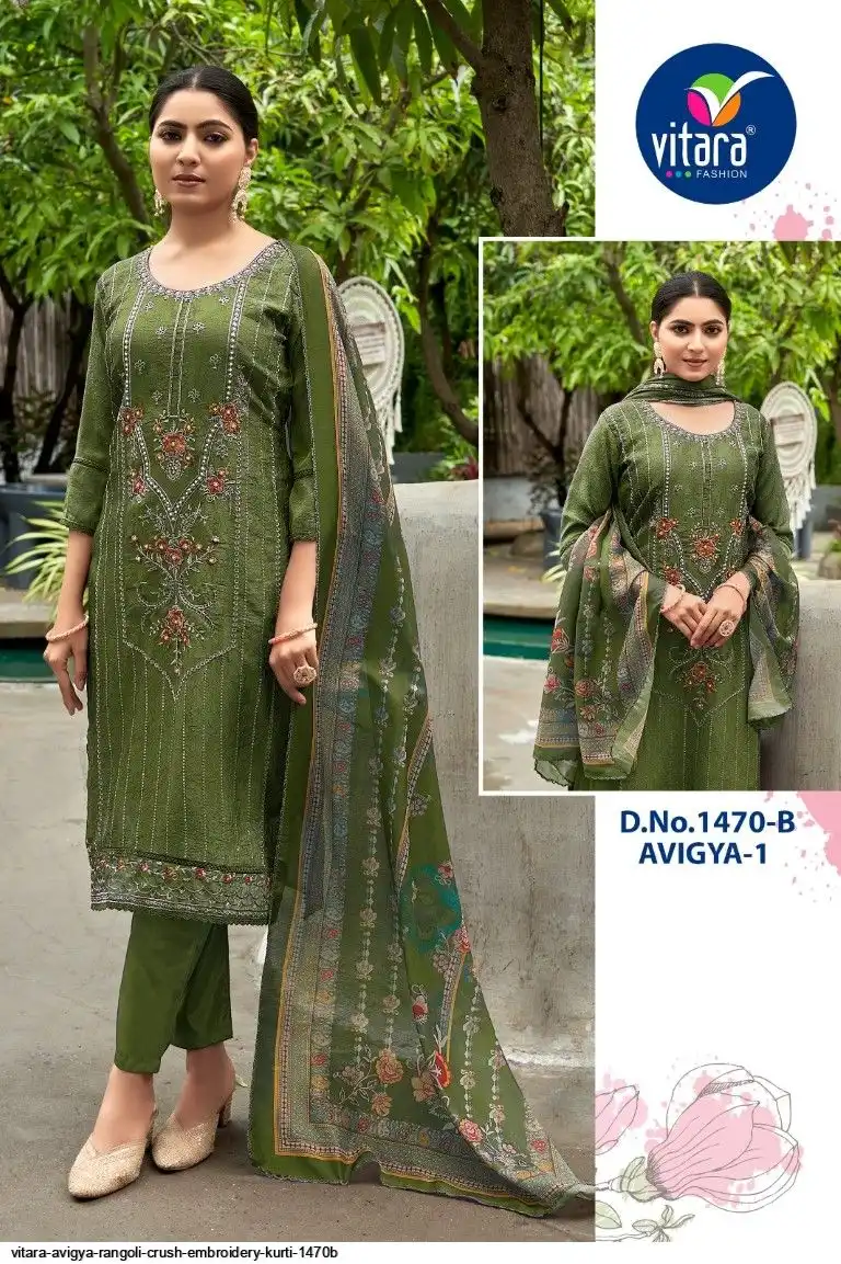 VITARA AVIGYA RANGOLI CRUSH EMBROIDERY KURTI 1470B